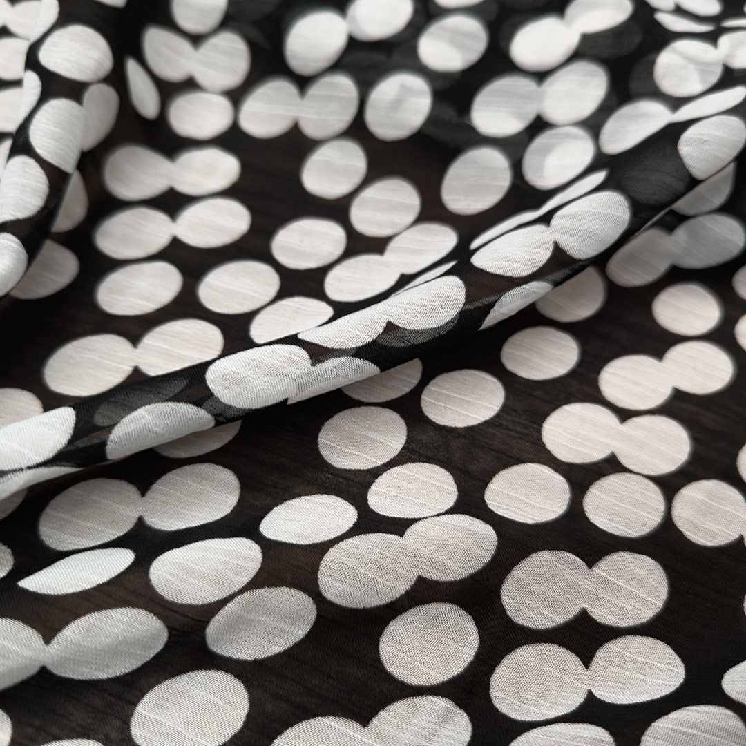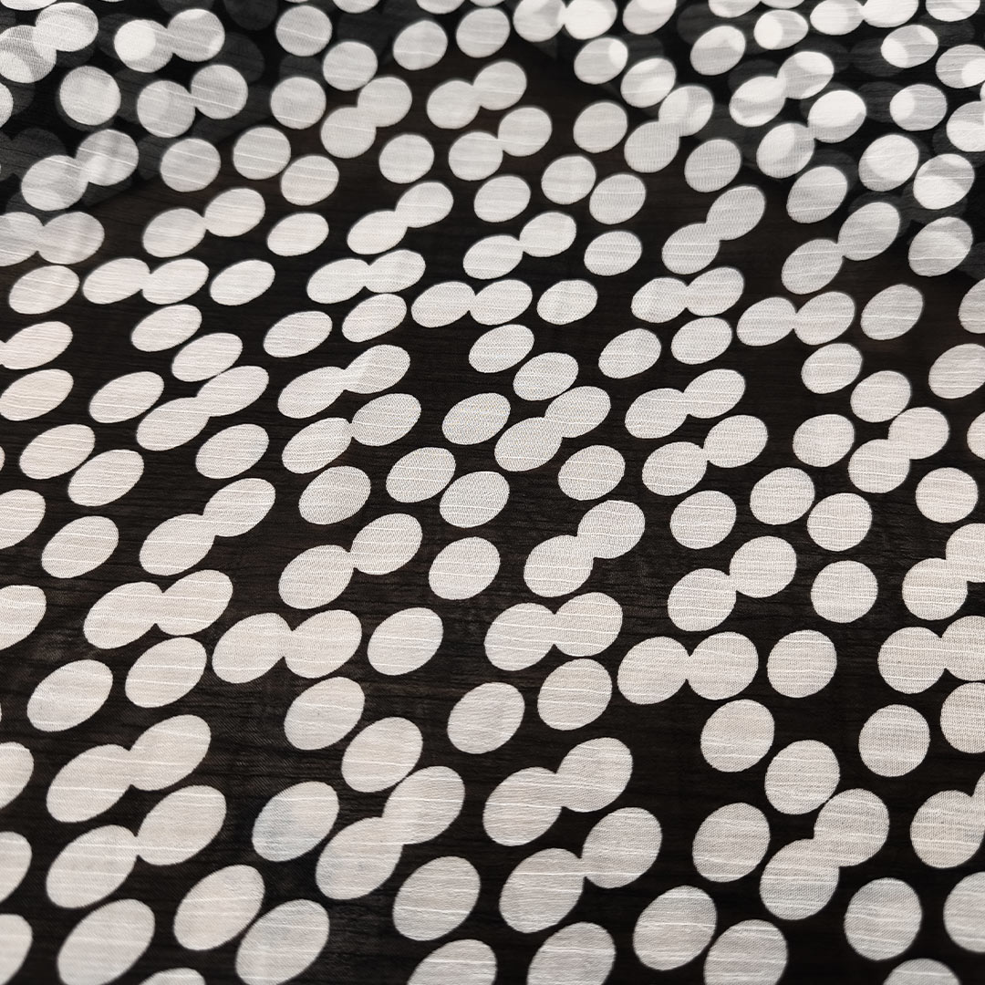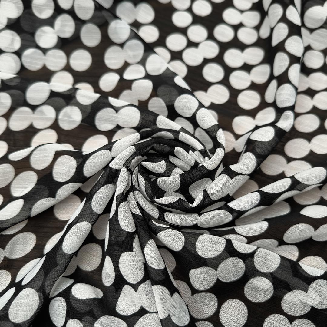 Tessuto Georgette a fantasia motivo pois bianco – nero