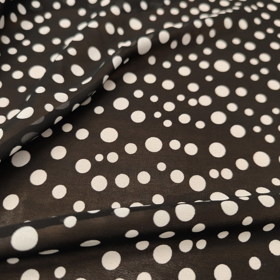 Tessuto Georgette a fantasia motivo pois nero – bianco