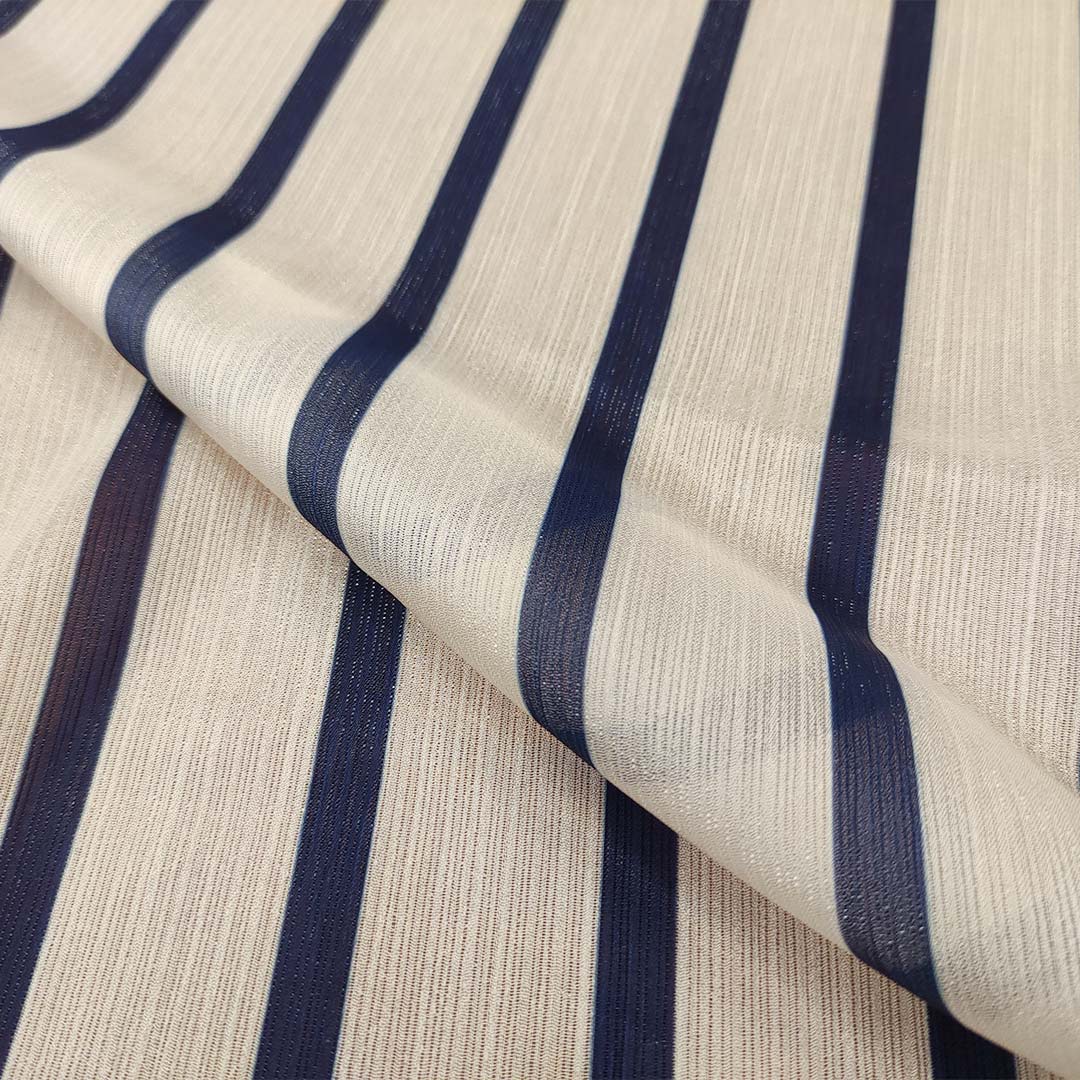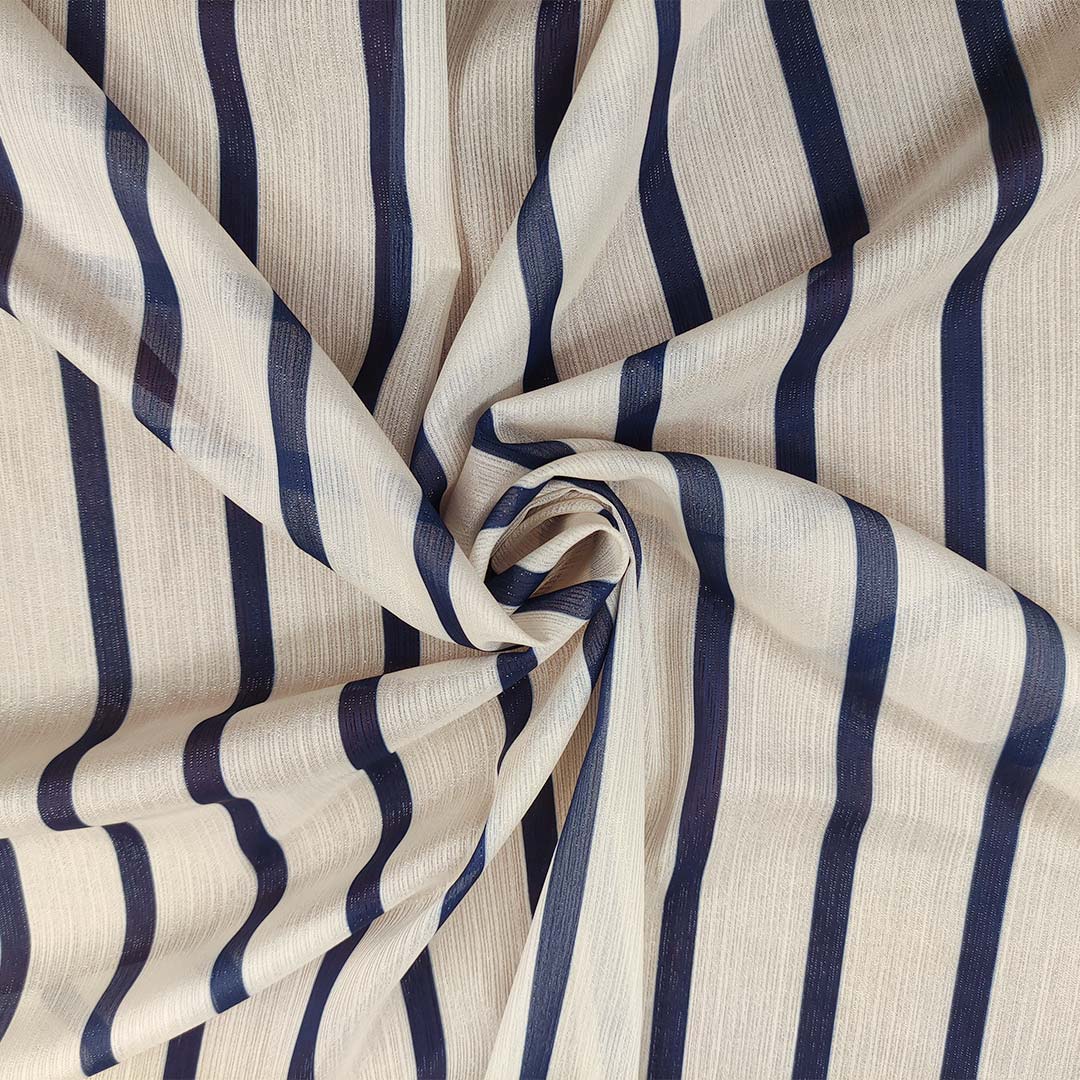Tessuto Georgette a fantasia motivo rigato avorio – blu