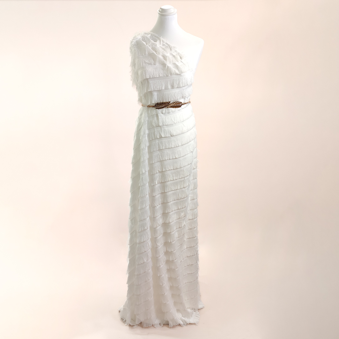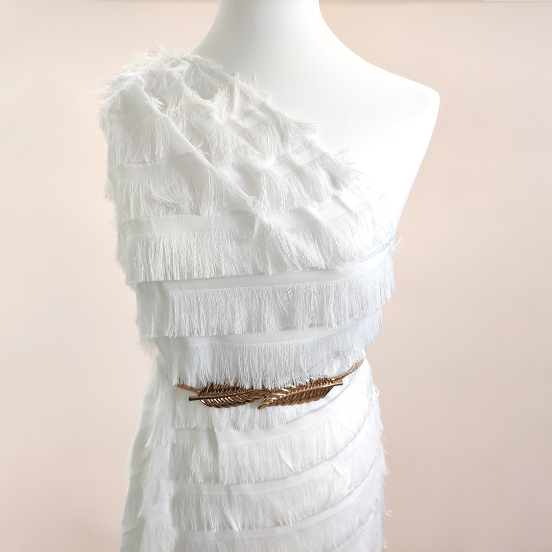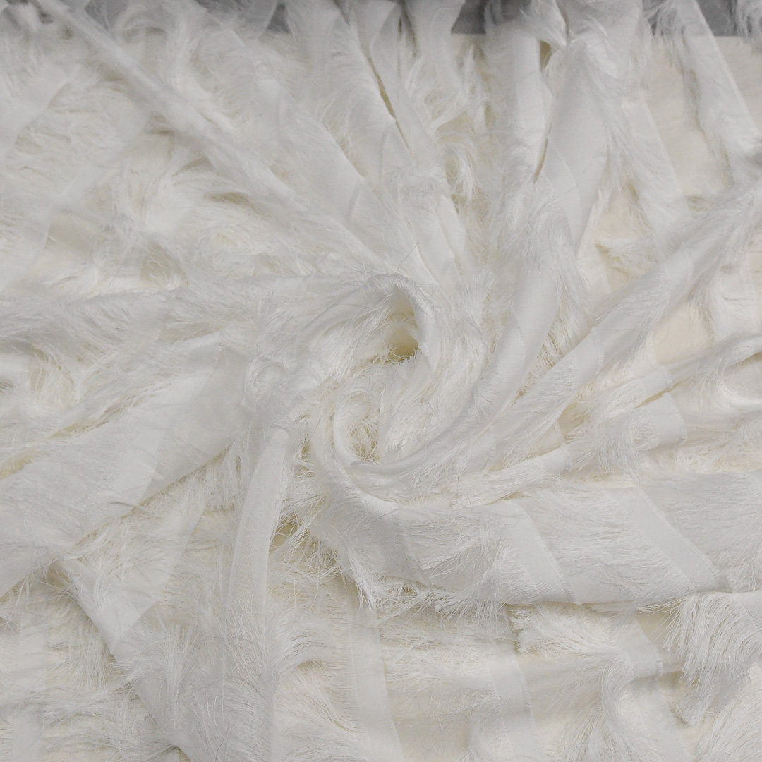 Tessuto Georgette con frange in tinta unita bianco