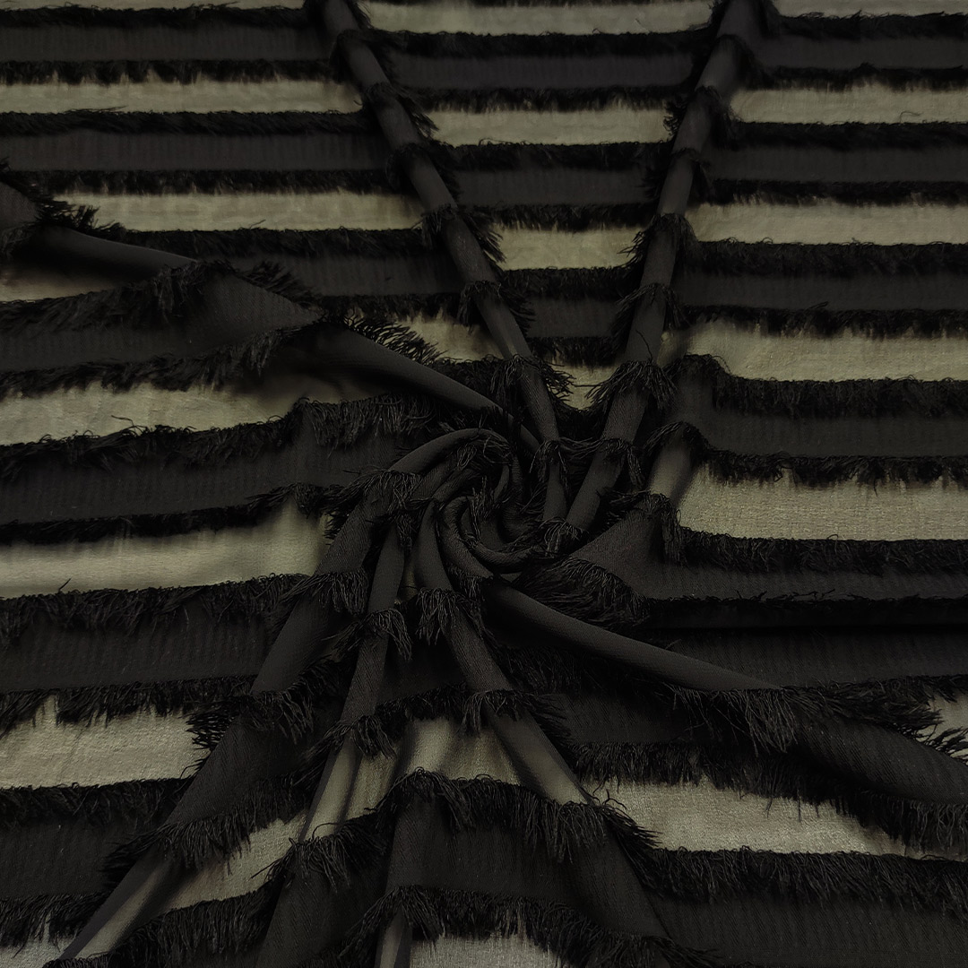 Tessuto Georgette con Frange in tinta unita nero