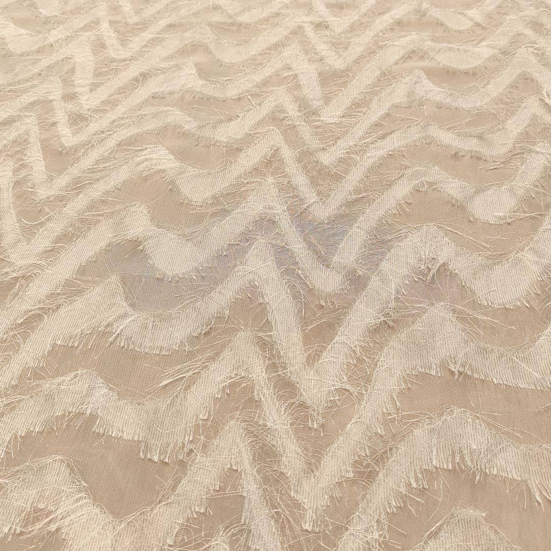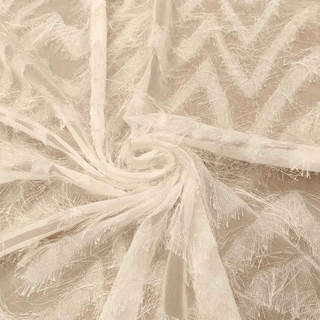 Tessuto Georgette con frange motivo geometrico bianco
