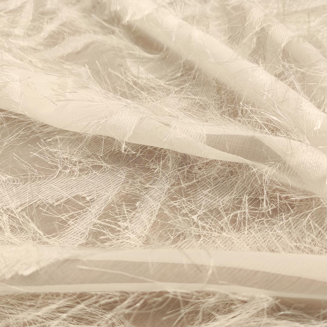 Tessuto Georgette con frange dalla mano fine, morbida e granulosa, leggermente trasparente, si presta alla realizzazione di camicie, abiti, gonne e bluse.