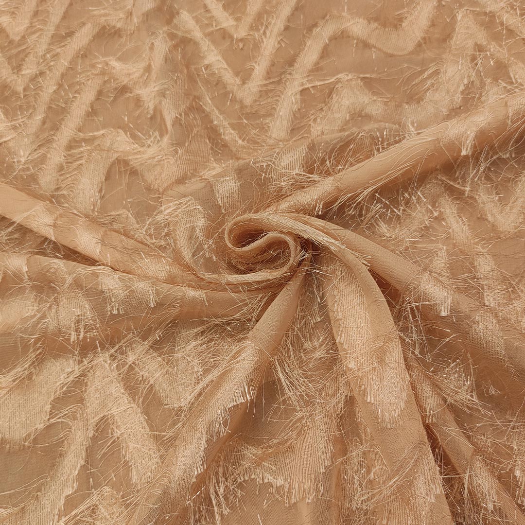 Tessuto Georgette con frange motivo geometrico rosa cipria