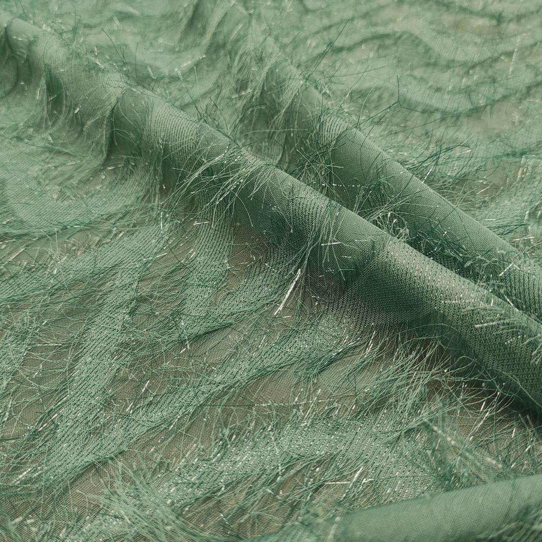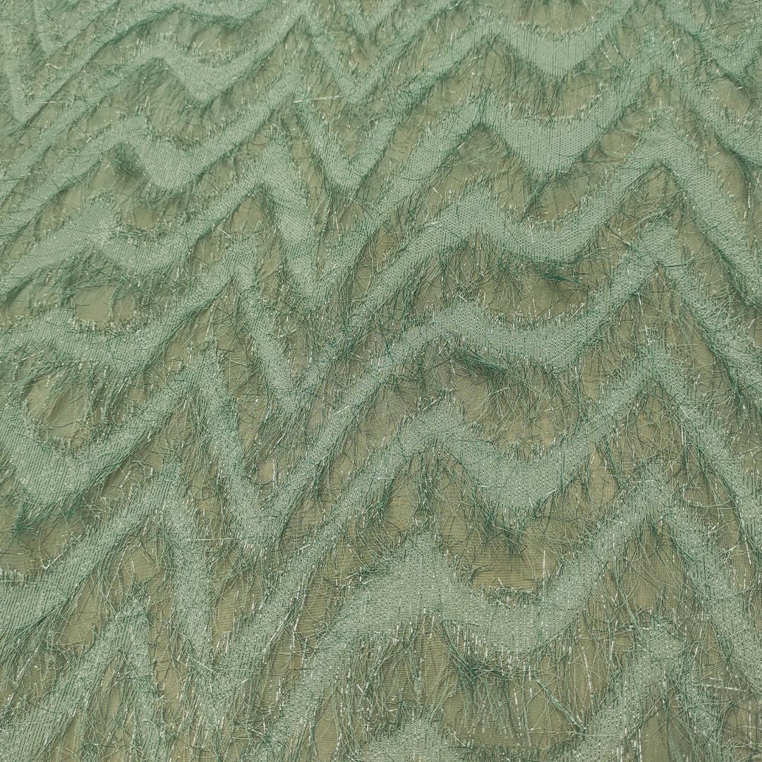 Tessuto Georgette con frange motivo geometrico verde salvia