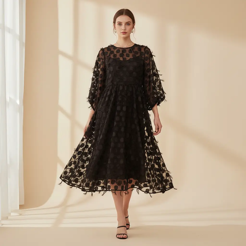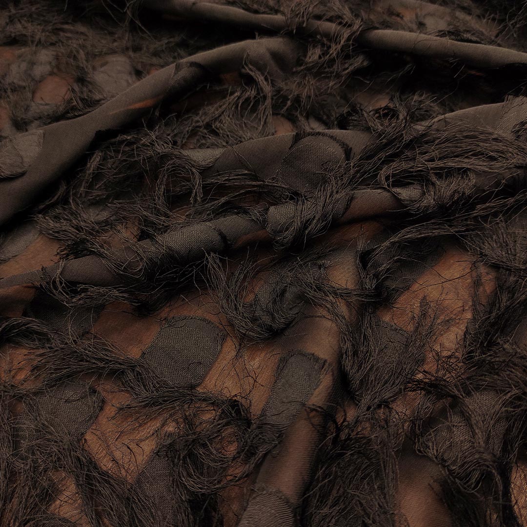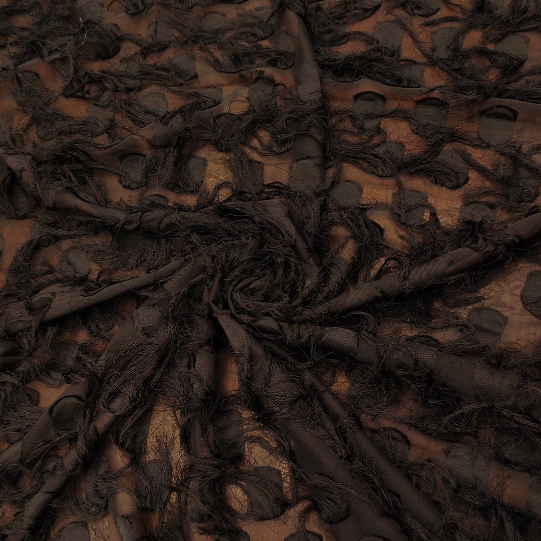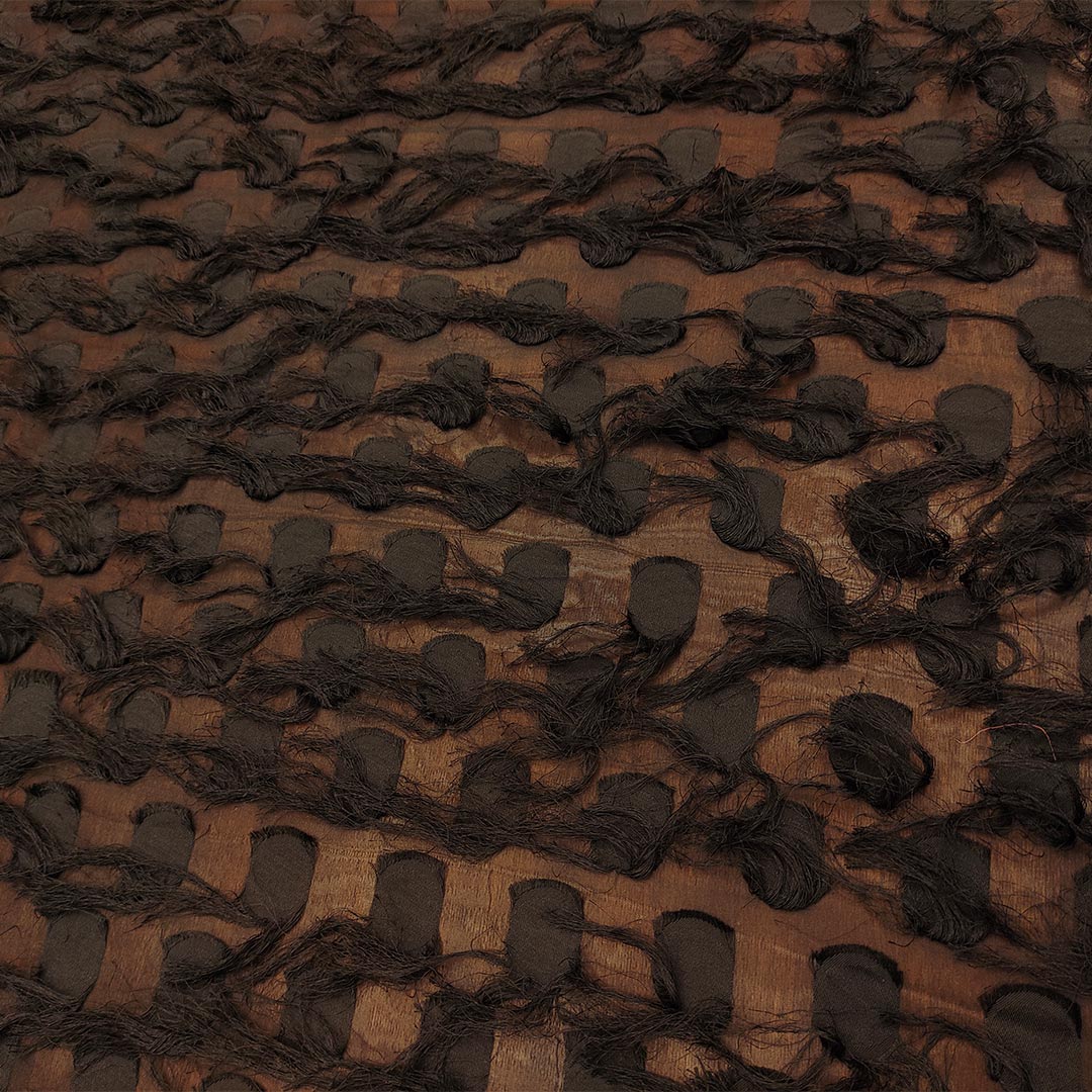 Tessuto Georgette con frange dalla mano fine, morbida e granulosa, leggermente trasparente, si presta alla realizzazione di camicie, abiti, gonne e bluse.