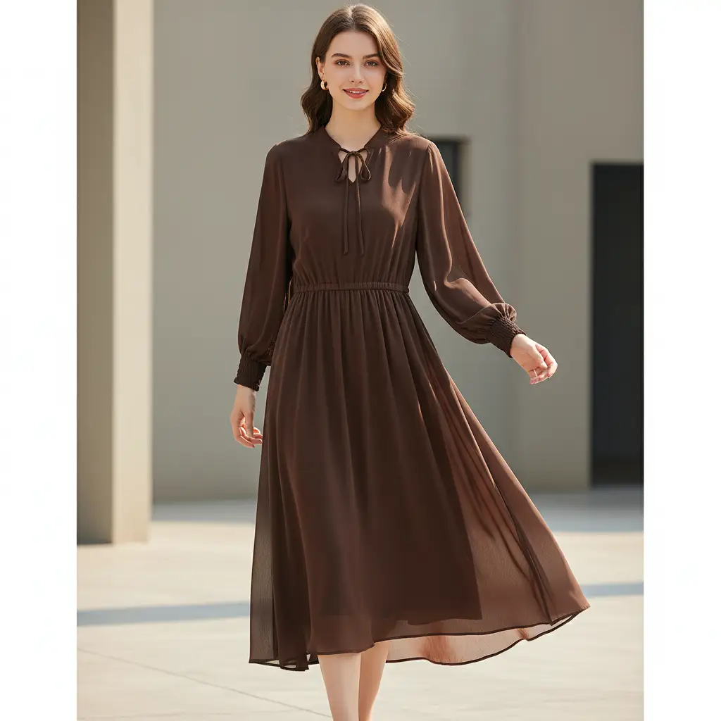 Tessuto Doppio Georgette in tinta unita marrone