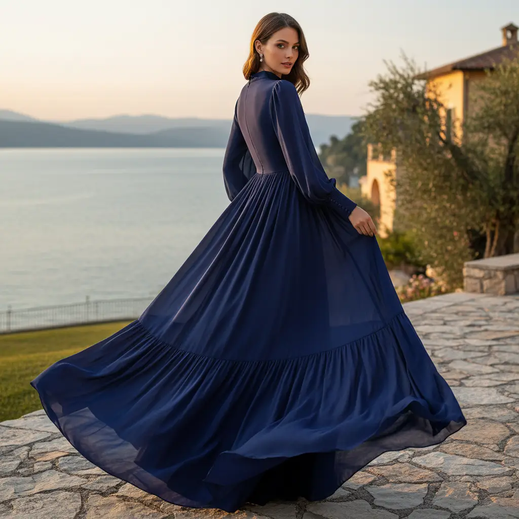 Tessuto Georgette in tinta unita dalla mano morbida e rugosa, per realizzare capi come: abiti, camicie, gonne e stole.