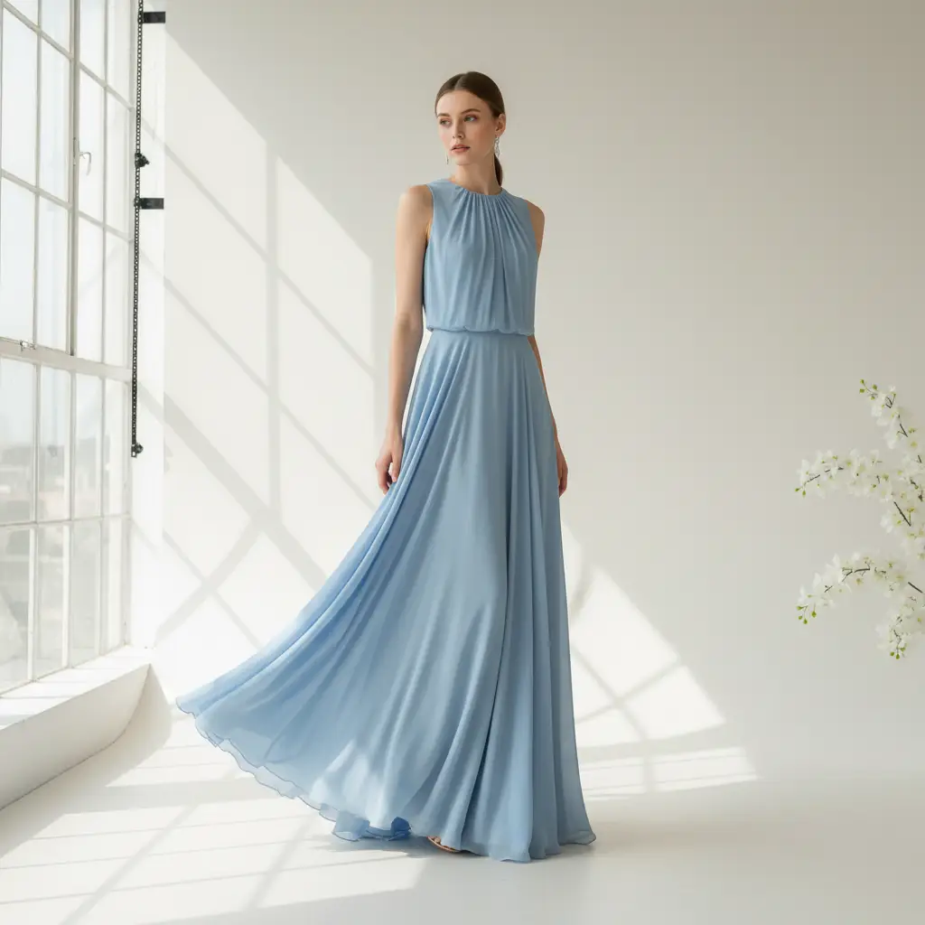Tessuto Georgette in tinta unita dalla mano morbida e rugosa, per realizzare capi come: abiti, camicie, gonne e stole.