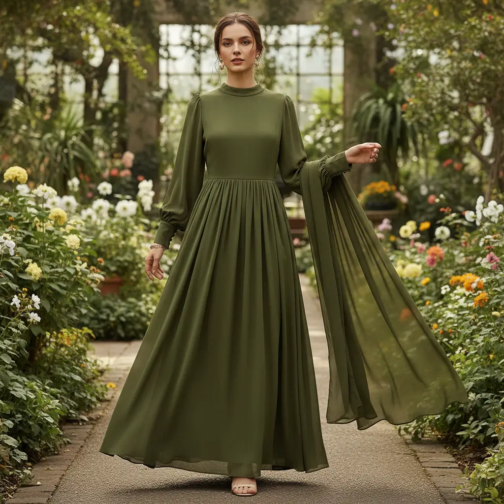 Tessuto Georgette tinta unita verde oliva