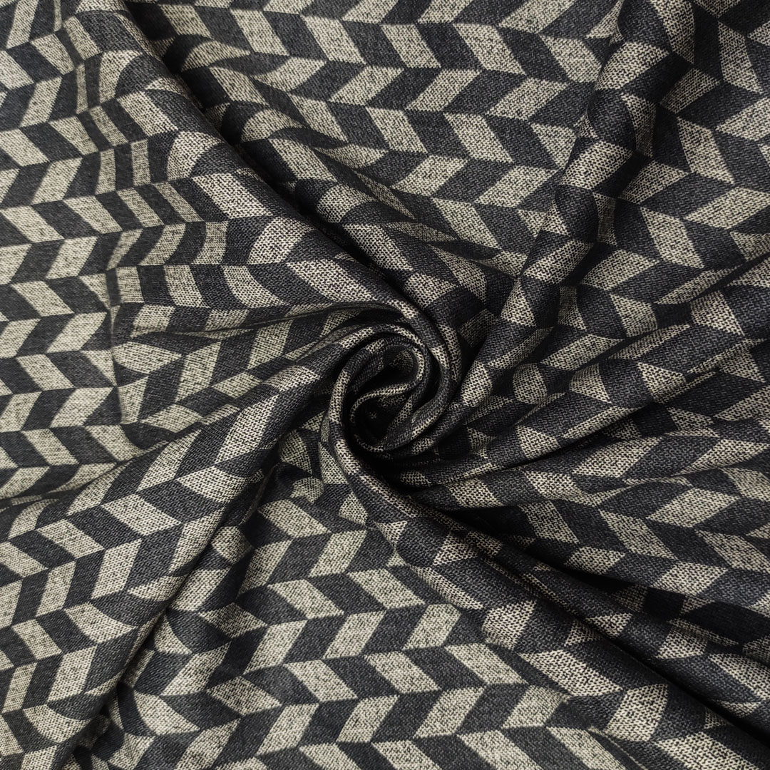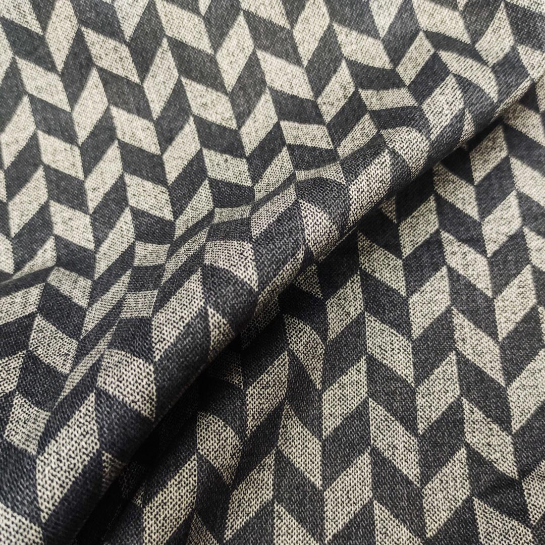 Tessuto Caldo Cotone a fantasia motivo geometrico grigio – blu jeans