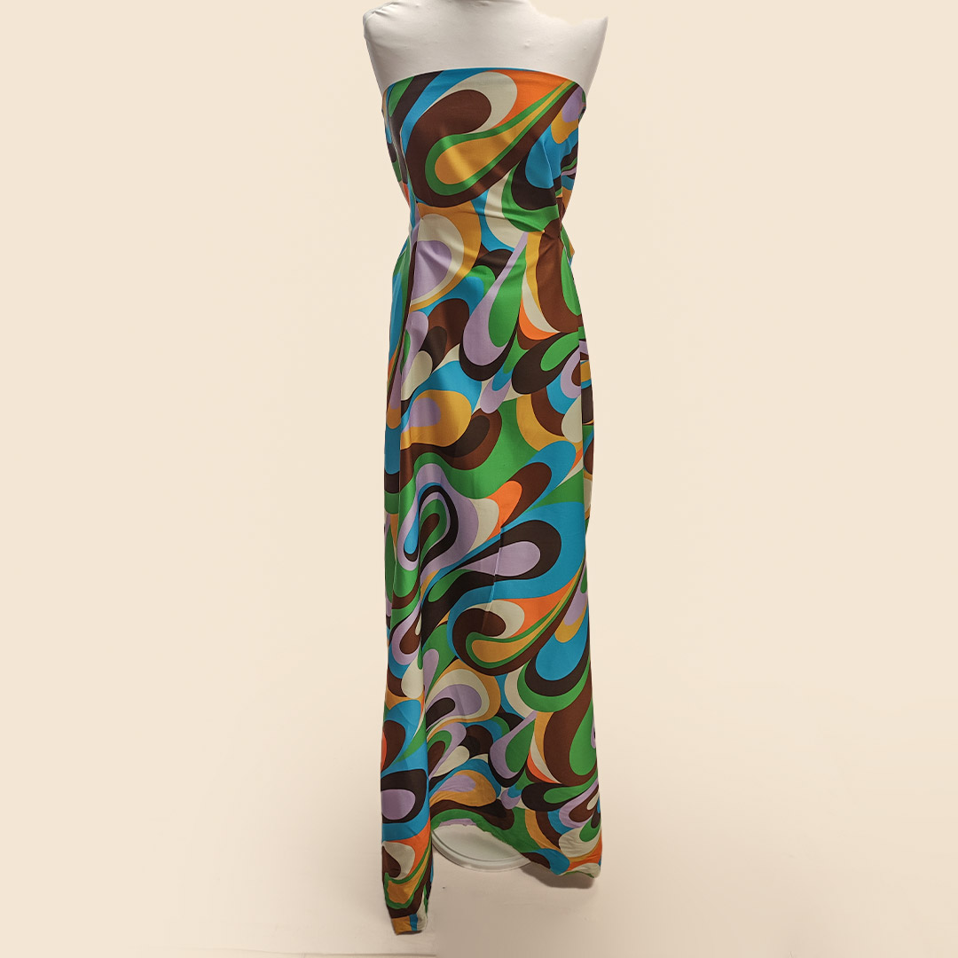 Tessuto Cotone a fantasia dalla mano morbida, leggermente elasticizzato, ideale per realizzare capi freschi da indossare nella stagione Primavera – Estate come: abiti, gonne, pantaloni e giacche.