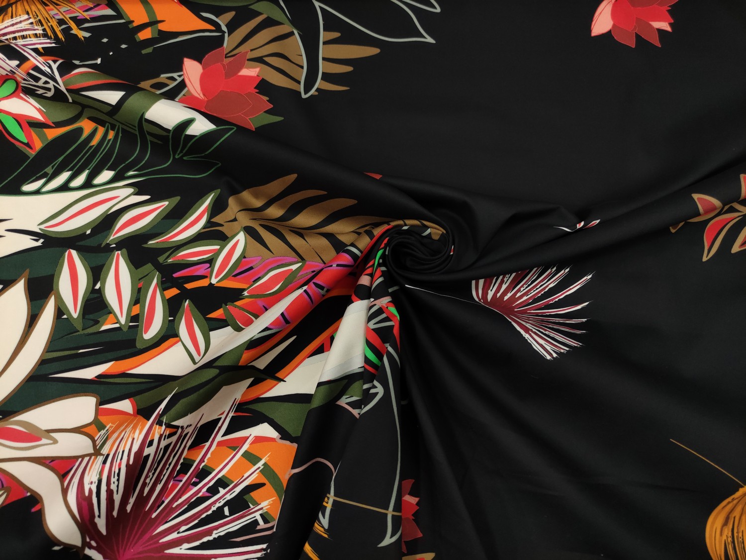 Tessuto Cotone a fantasia motivo floreale fondo nero 01