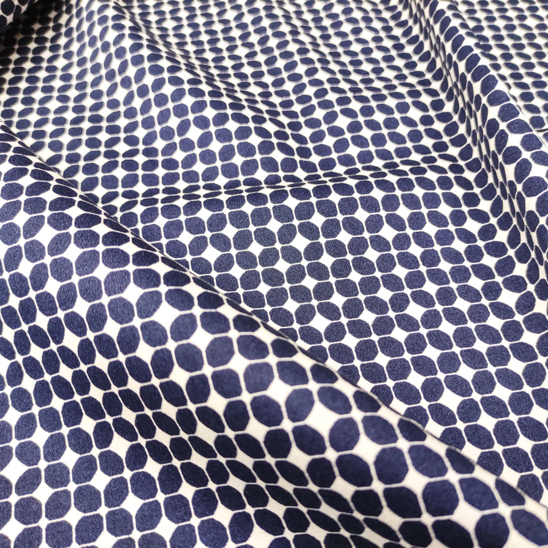 Tessuto Cotone a fantasia motivo geometrico bianco – blu notte
