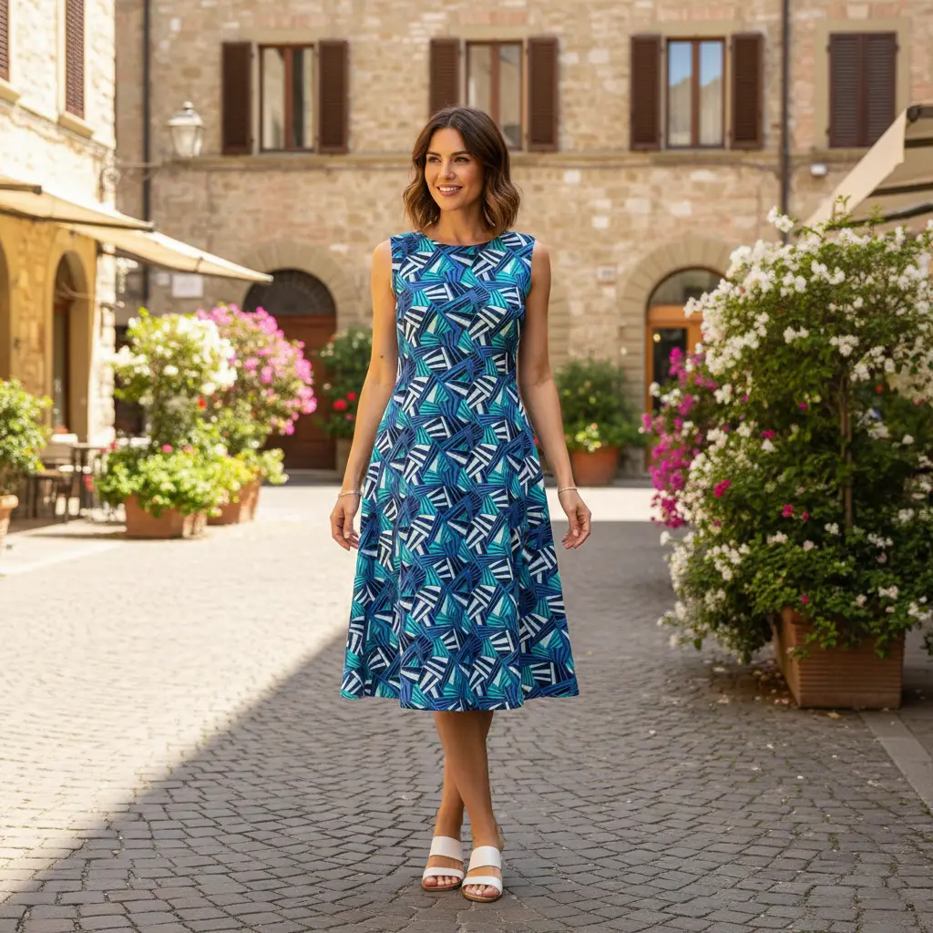 Tessuto Cotone a fantasia leggermente elasticizzato dalla mano decisa e sostenuta, ideale per realizzare capi comodi e freschi da utilizzare nella stagione Primavera – estate come: abiti, gonne, pantaloni e giacche.