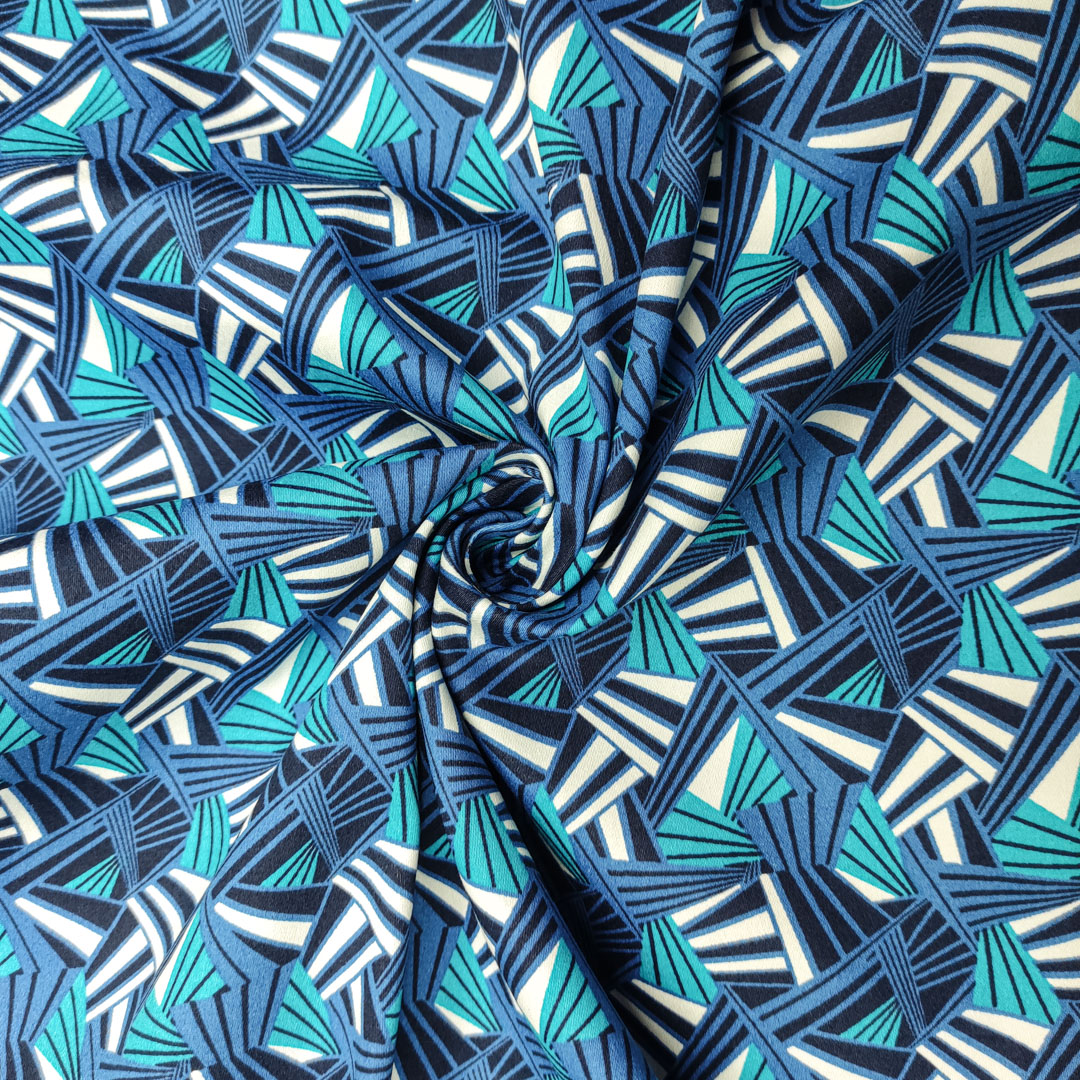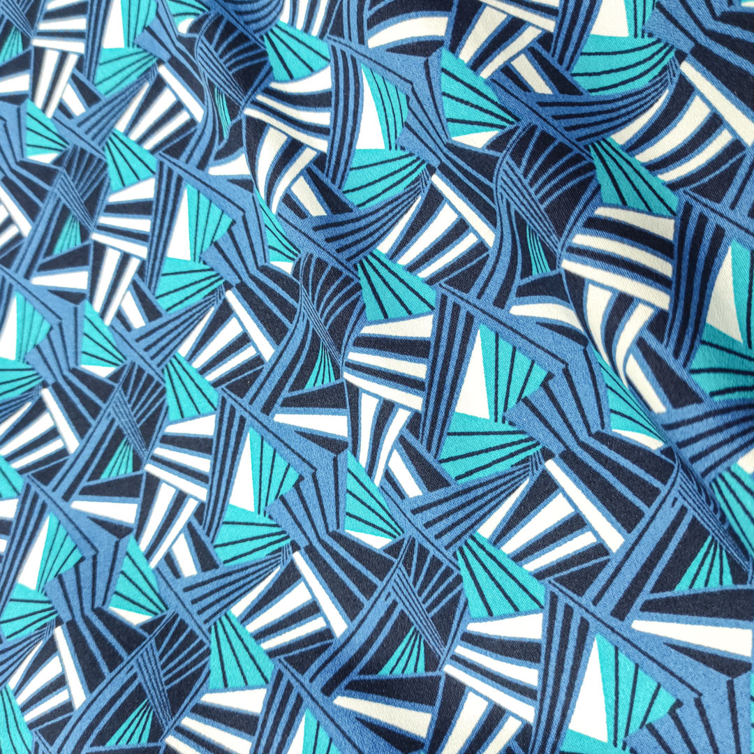 Tessuto Cotone a fantasia motivo geometrico blu elettrico – turchese – bianco