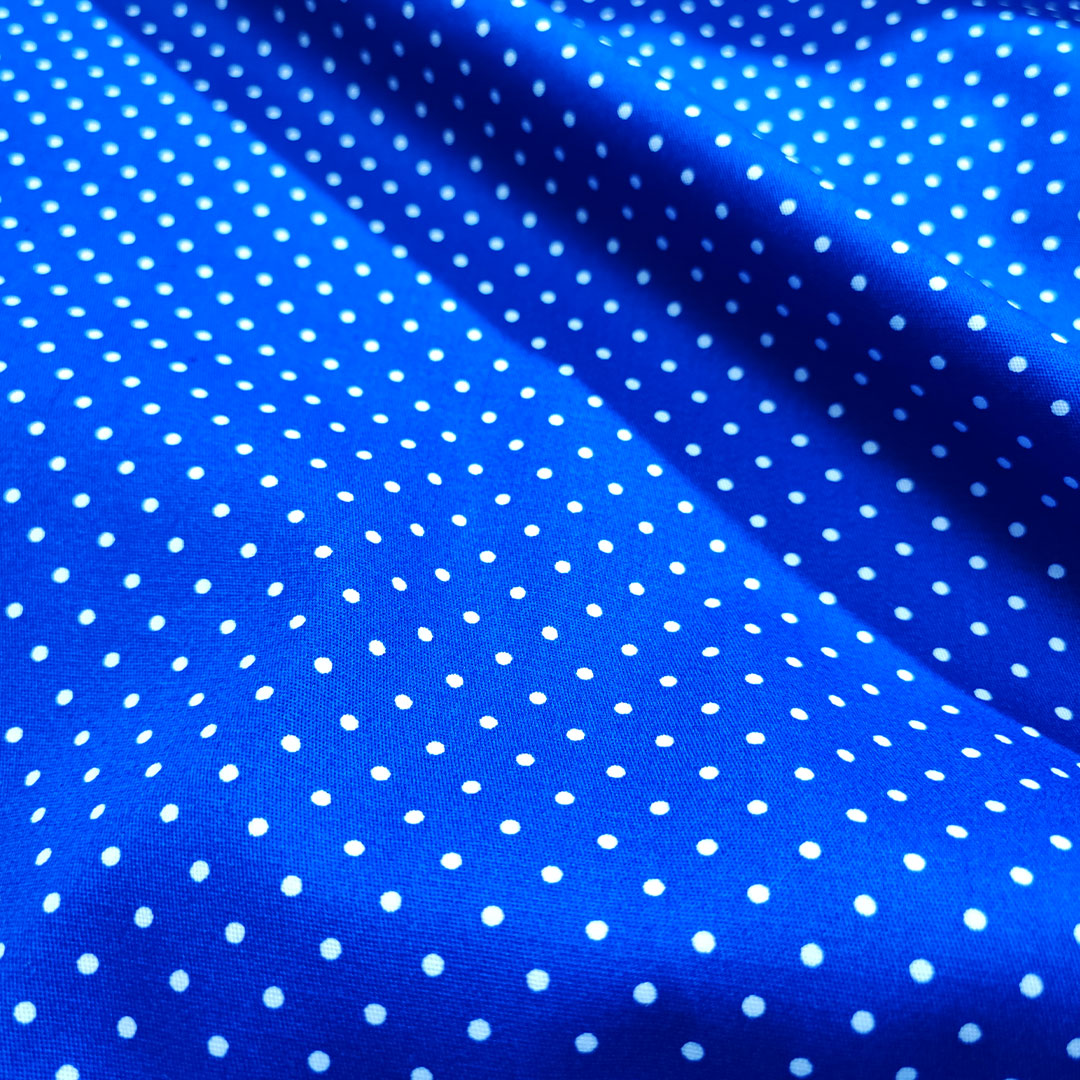 Tessuto Cotone a fantasia motivo pois piccoli blu elettrico – bianco