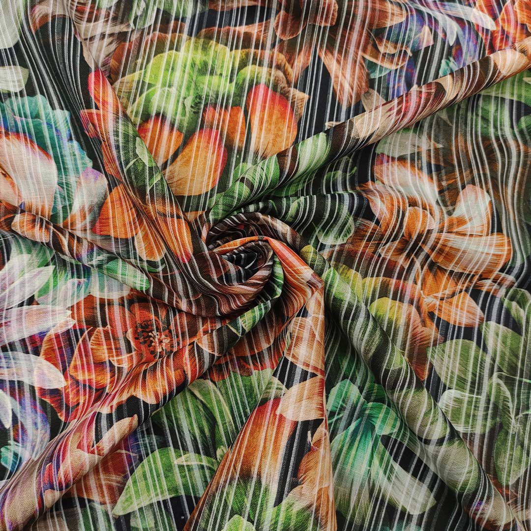 Tessuto Cotone e Lino a fantasia motivo floreale verde – blu – arancione