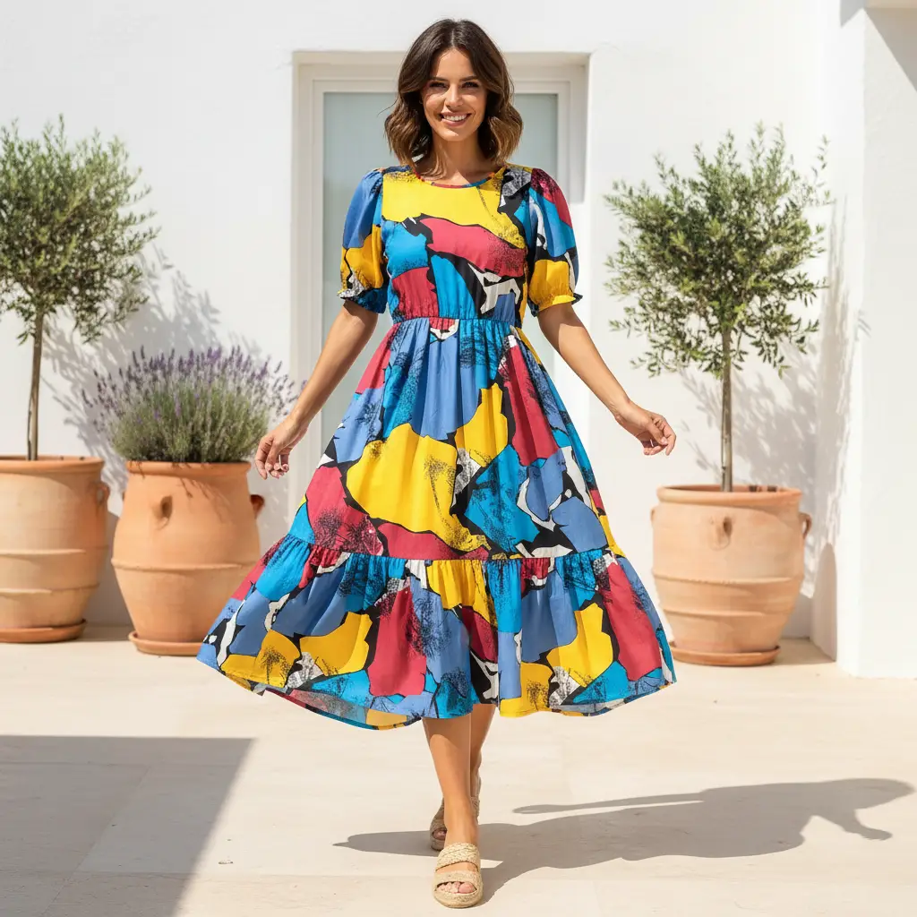 Tessuto Cotone leggero a fantasia dalla mano morbida, leggera e fresca, leggermente elasticizzato ideale per realizzare capi freschi come: abiti, gonne, pantaloni e camicie.