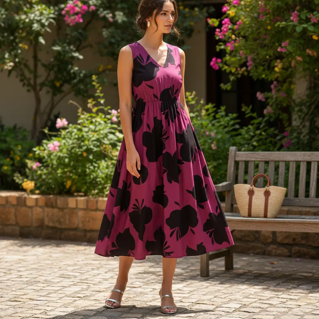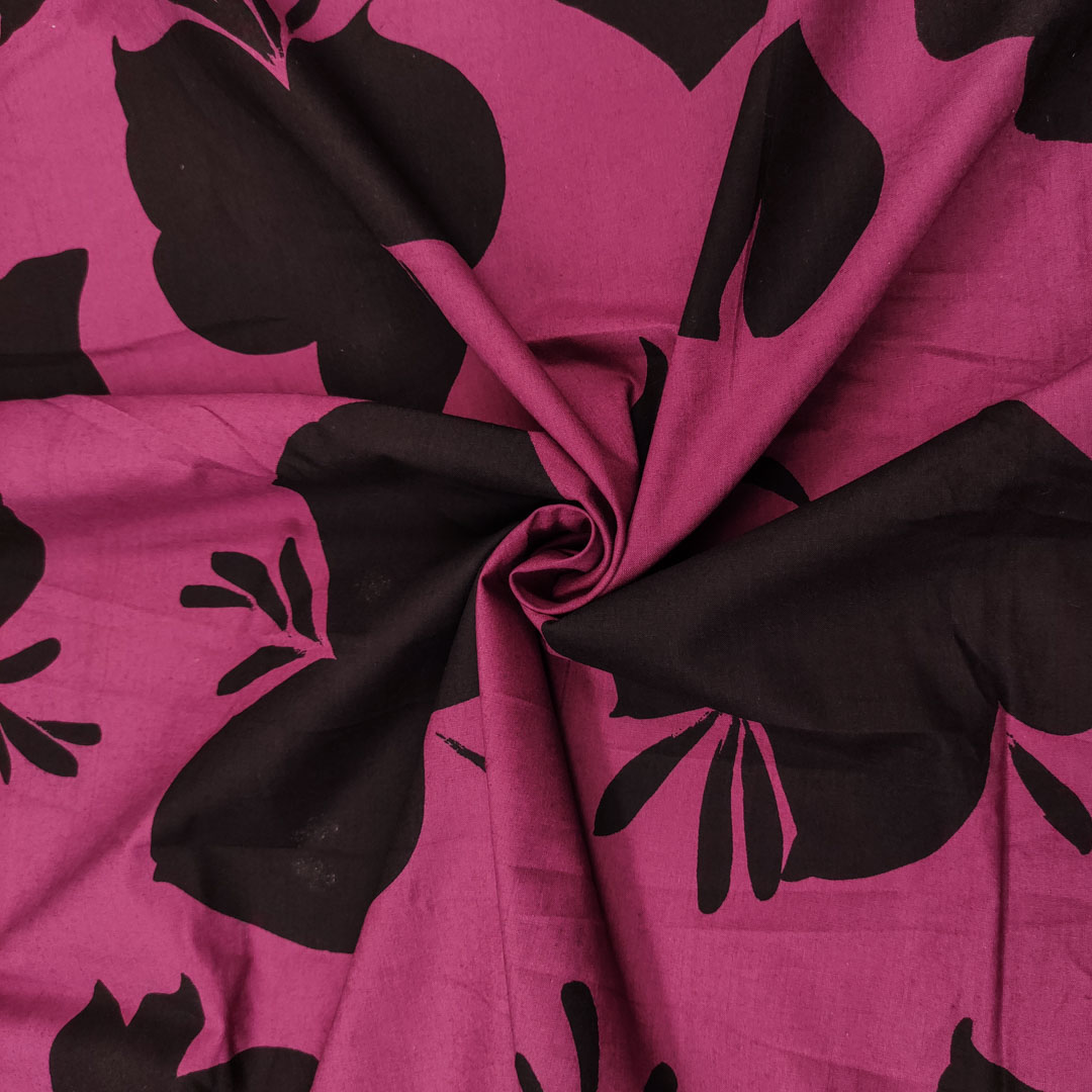 Tessuto Cotone leggero a fantasia motivo floreale nero – prugna