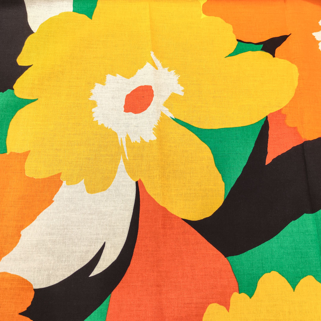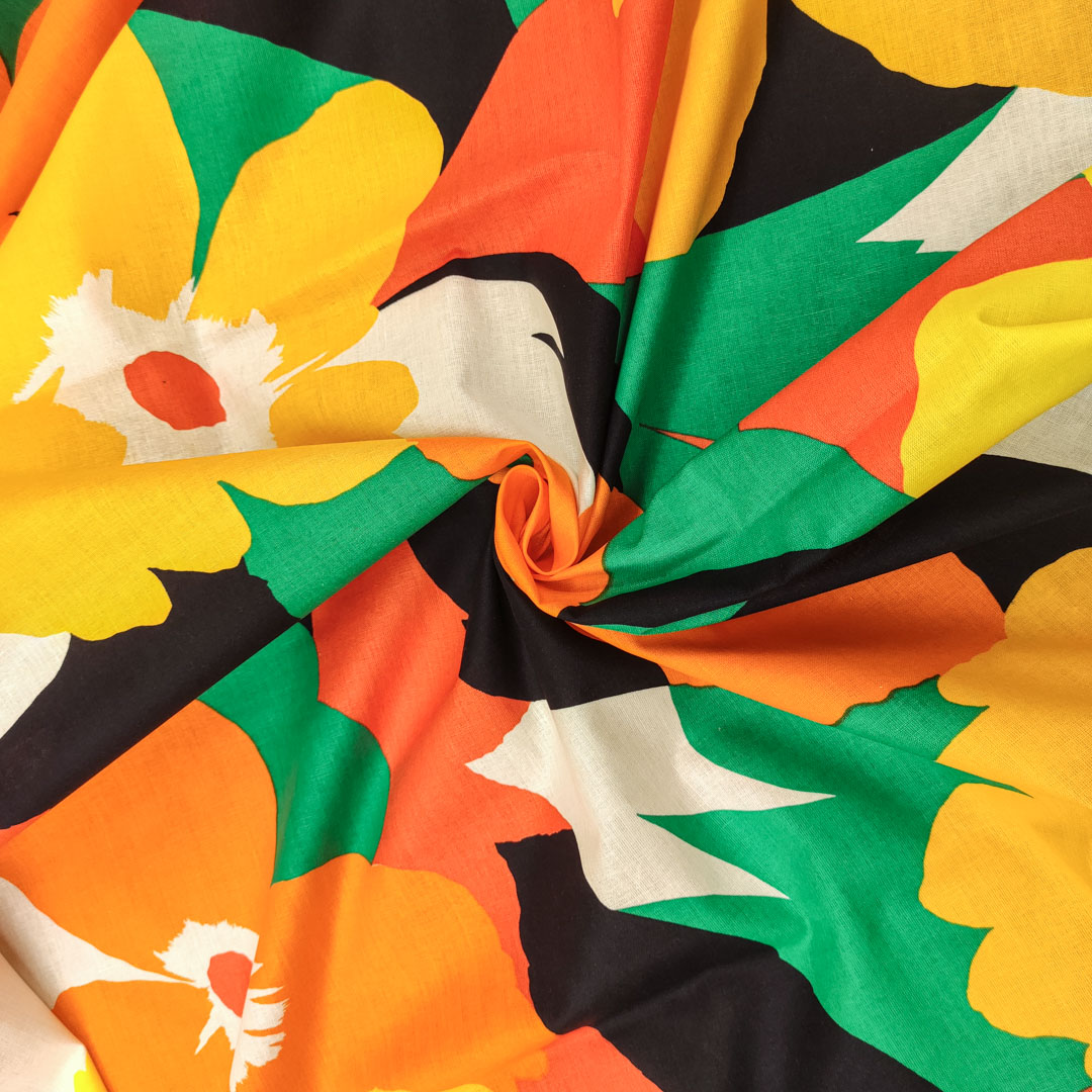 Tessuto Cotone leggero a fantasia motivo floreale verde – giallo – arancio