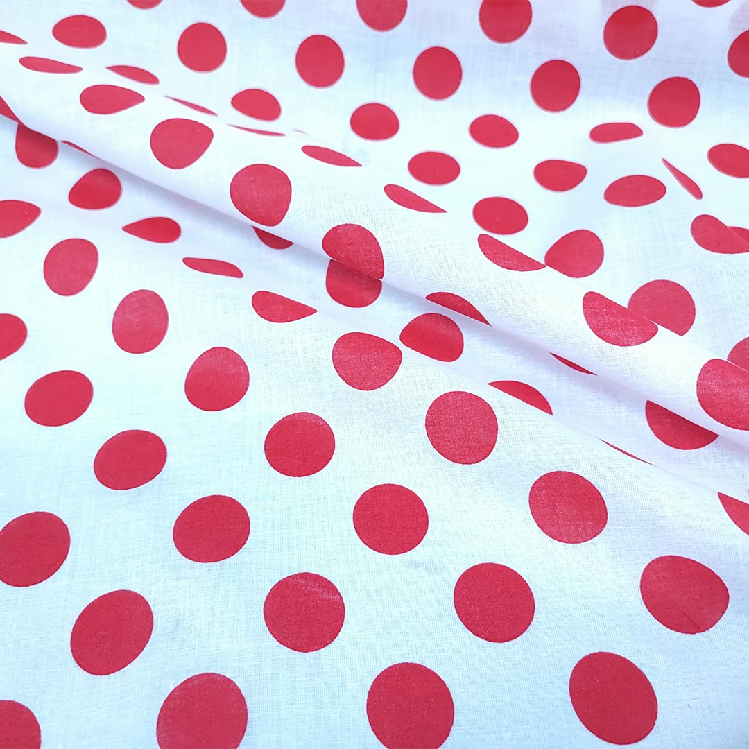 Tessuto Cotone leggero a fantasia motivo pois bianco – rosso