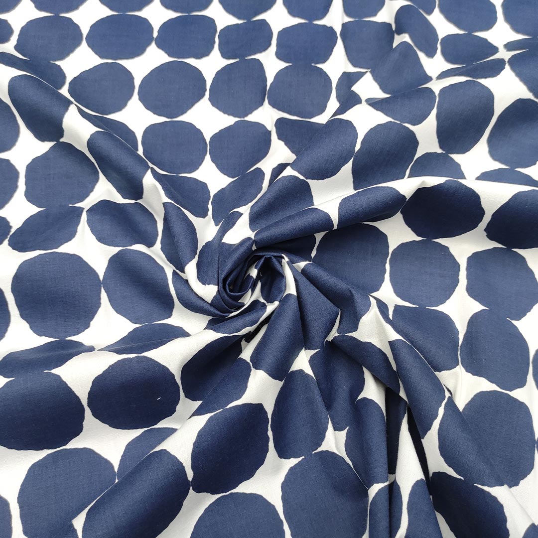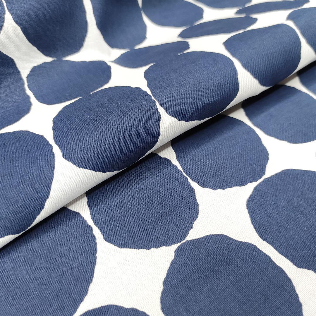 Tessuto Cotone leggero a fantasia motivo pois grandi bianco – blu