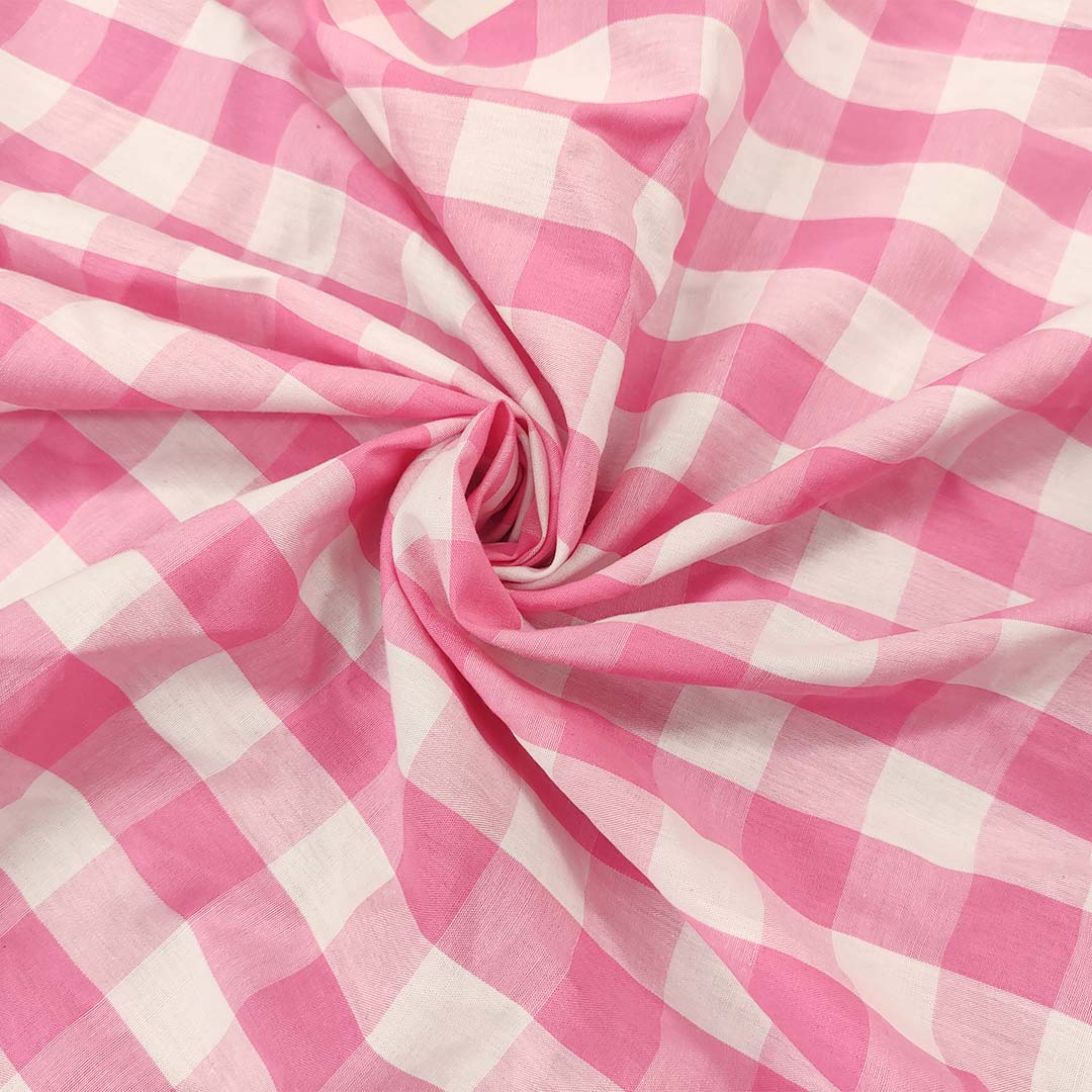 Tessuto Cotone leggero a fantasia motivo quadri bianco – rosa