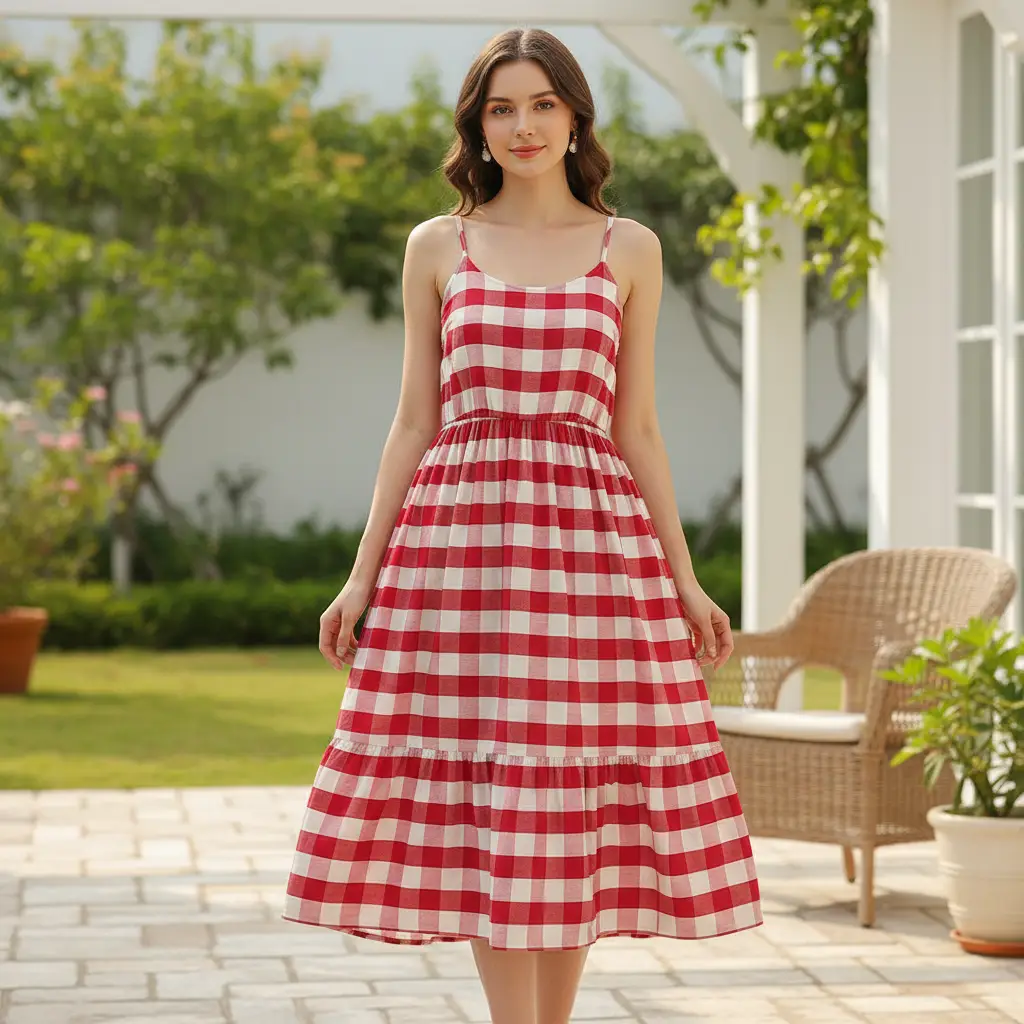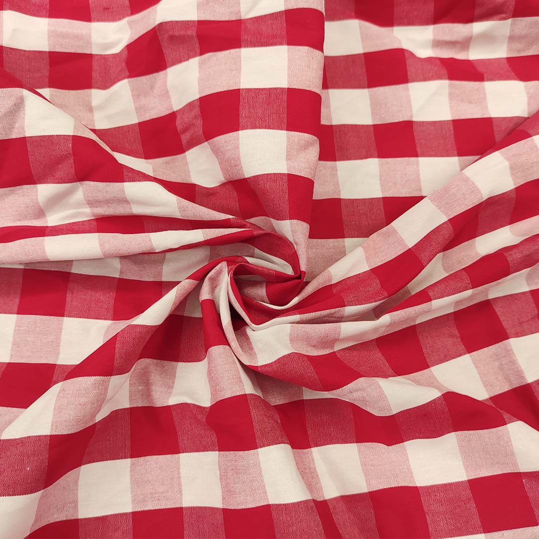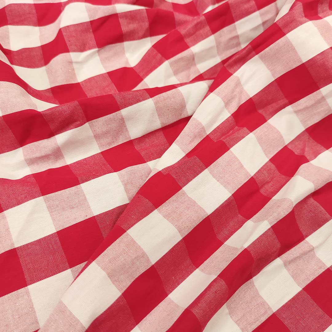 Tessuto Cotone leggero a fantasia motivo quadri bianco – rosso