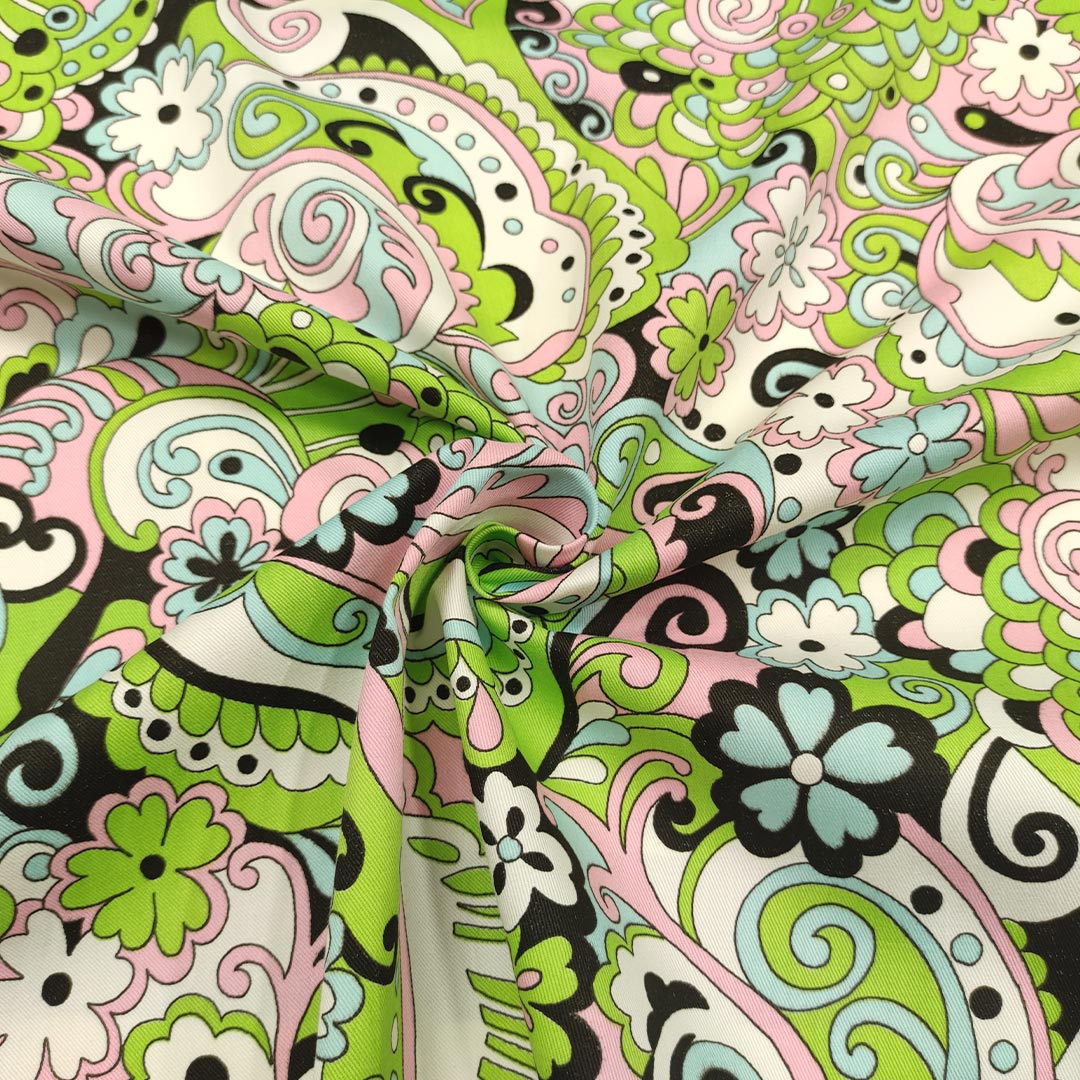 Tessuto Gabardine di Cotone a fantasia motivo astratto nero – verde – fucsia