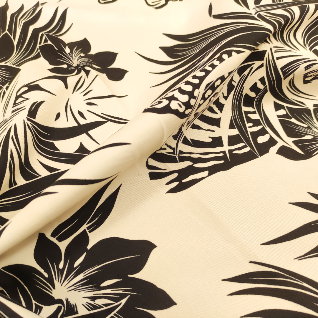 Tessuto Gabardine di Cotone a fantasia motivo floreale avorio – nero