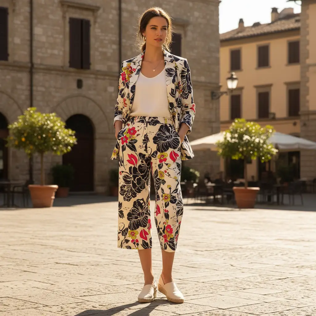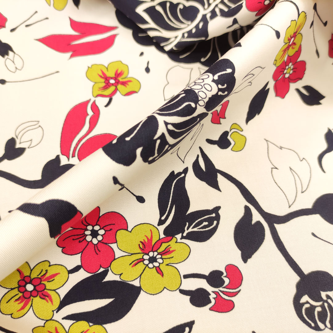 Tessuto Gabardine di cotone a fantasia leggermente elasticizzato si presta alla creazione di capi freschi e comodi da utilizzare nella stagione primavera – estate come: pantaloni, gonne, giacche ed abiti.