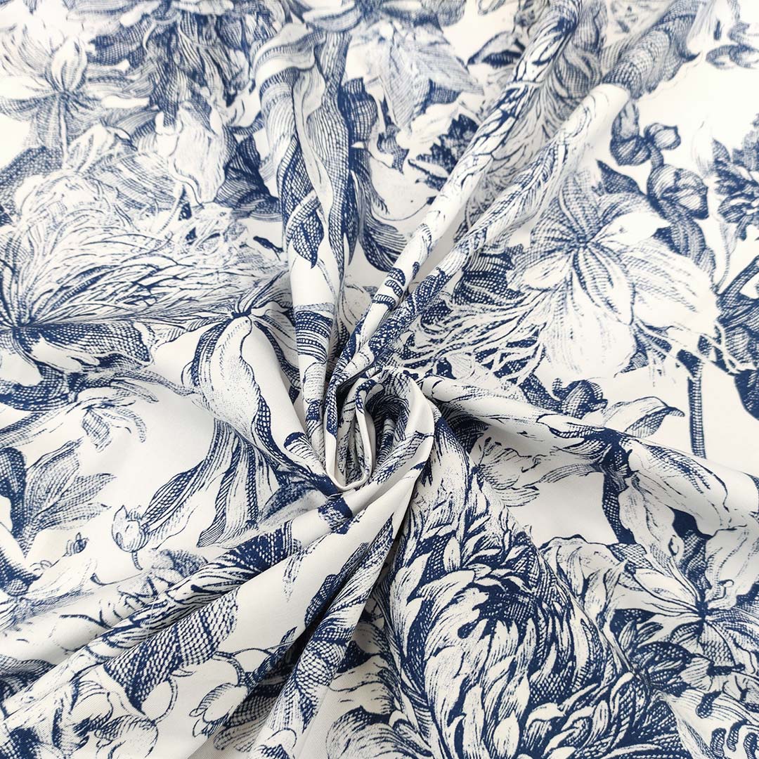 Tessuto Gabardine di Cotone a fantasia motivo floreale bianco – blu navy