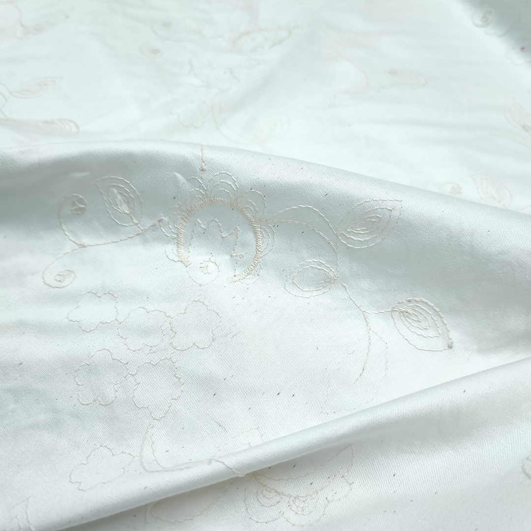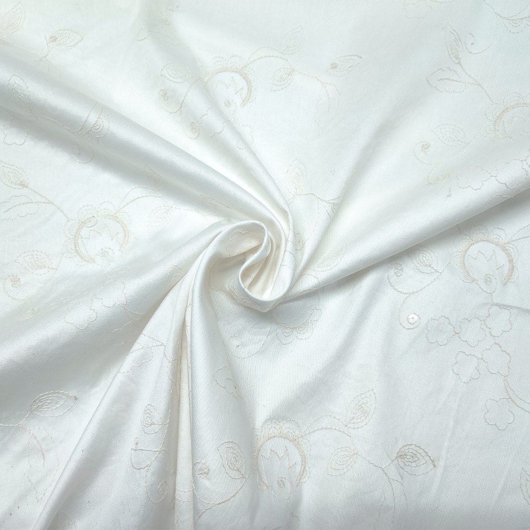 Tessuto Gabardine di cotone ricamato con paillettes bianco – panna