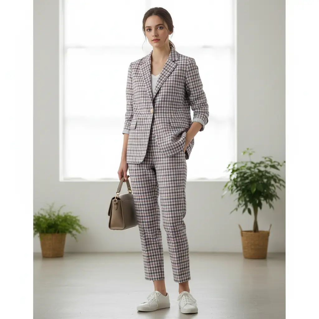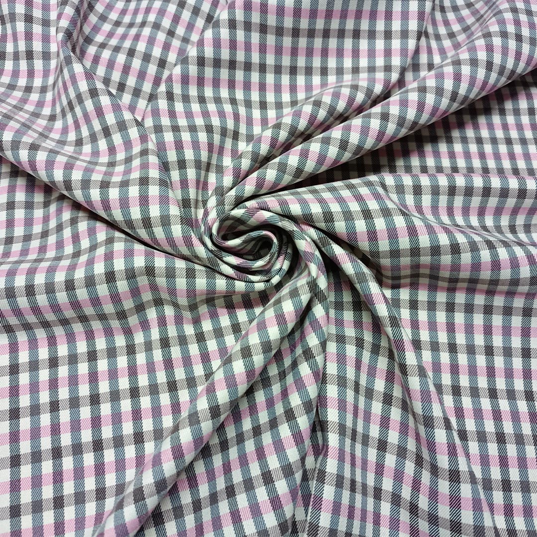 Tessuto Misto cotone peso primaverile motivo quadri grigio – rosa – bainco