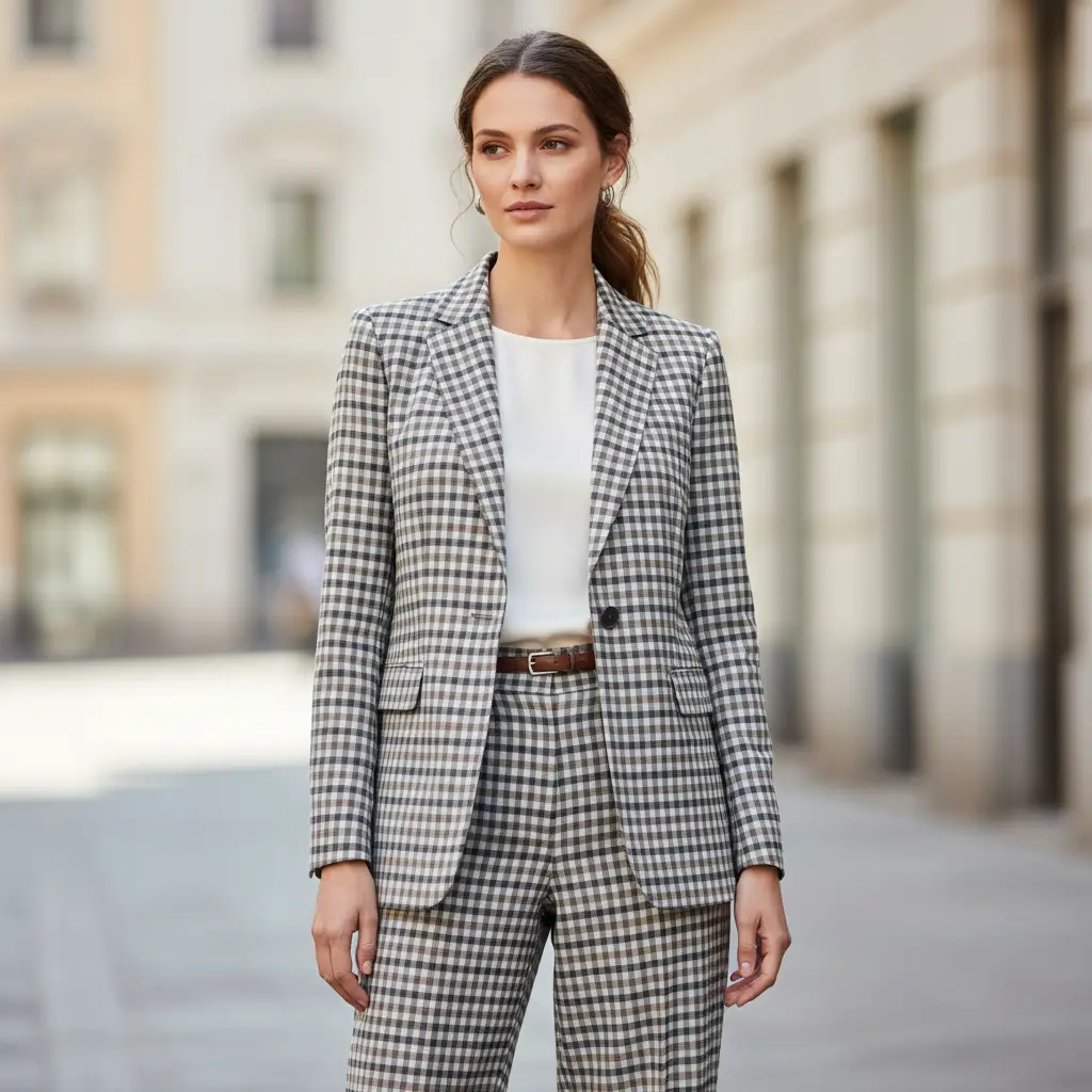 Tessuto Misto cotone peso primaverile motivo quadri grigio – tortora – bianco