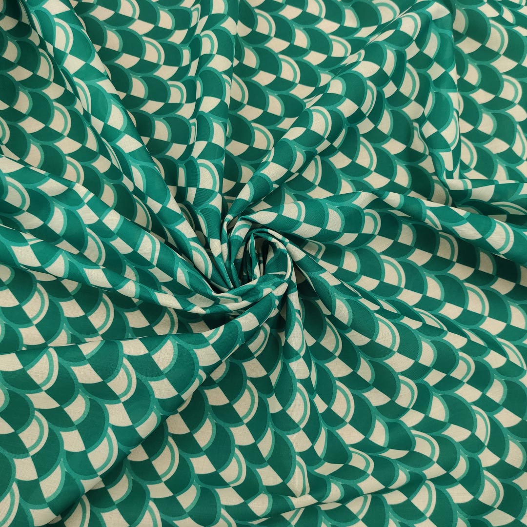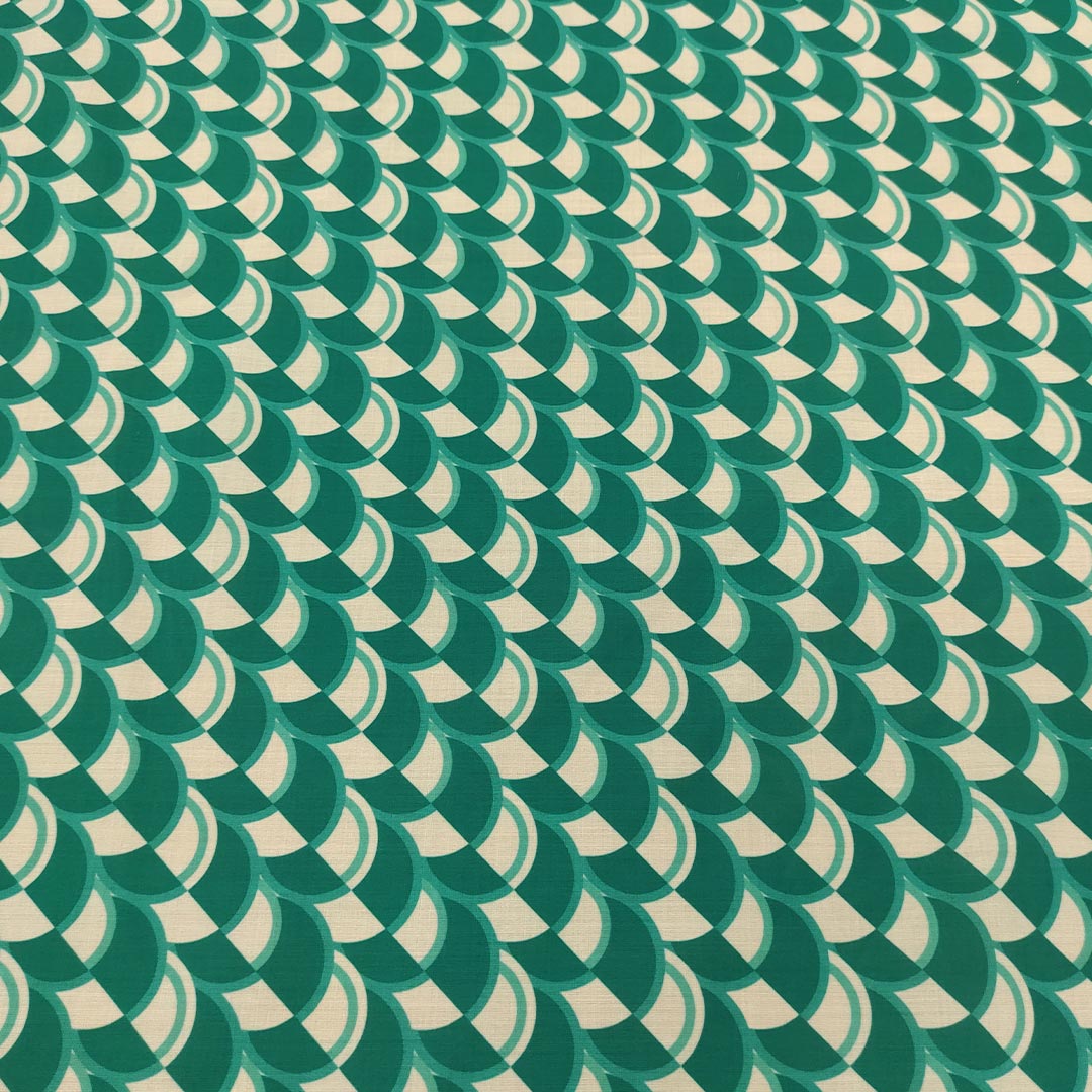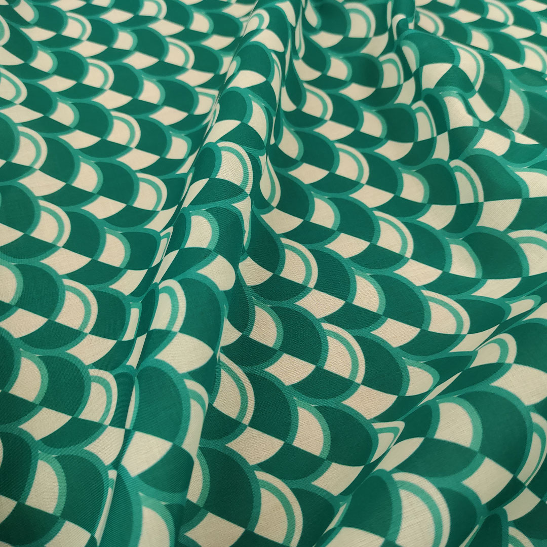 Tessuto Mussola di Cotone a fantasia motivo geometrico verde smeraldo – panna