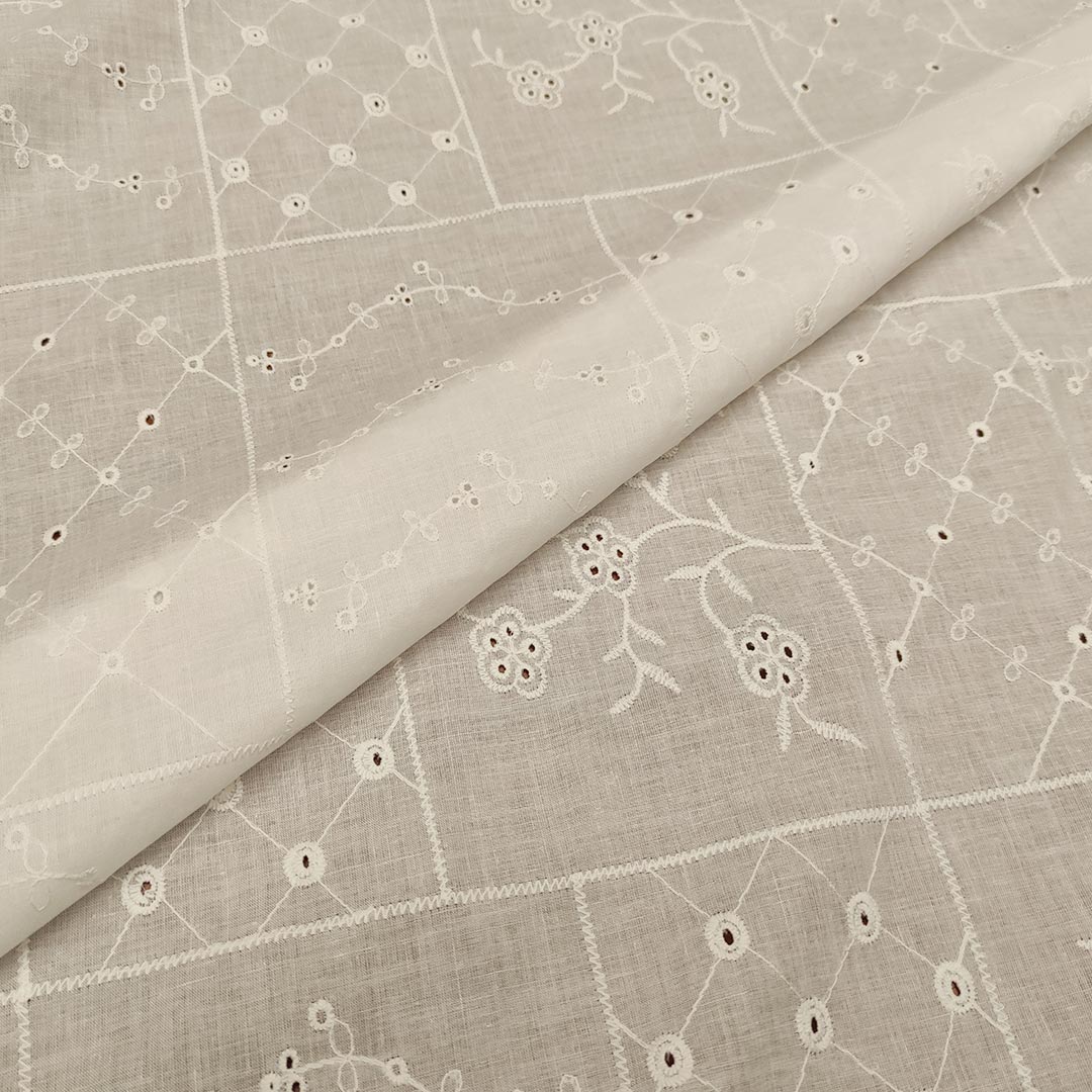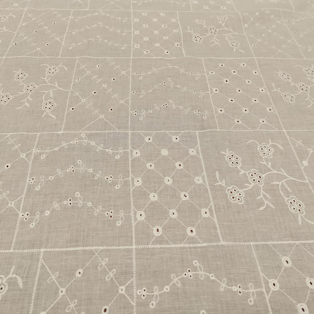 Tessuto Mussola di Cotone ricamato motivo astratto bianco seta