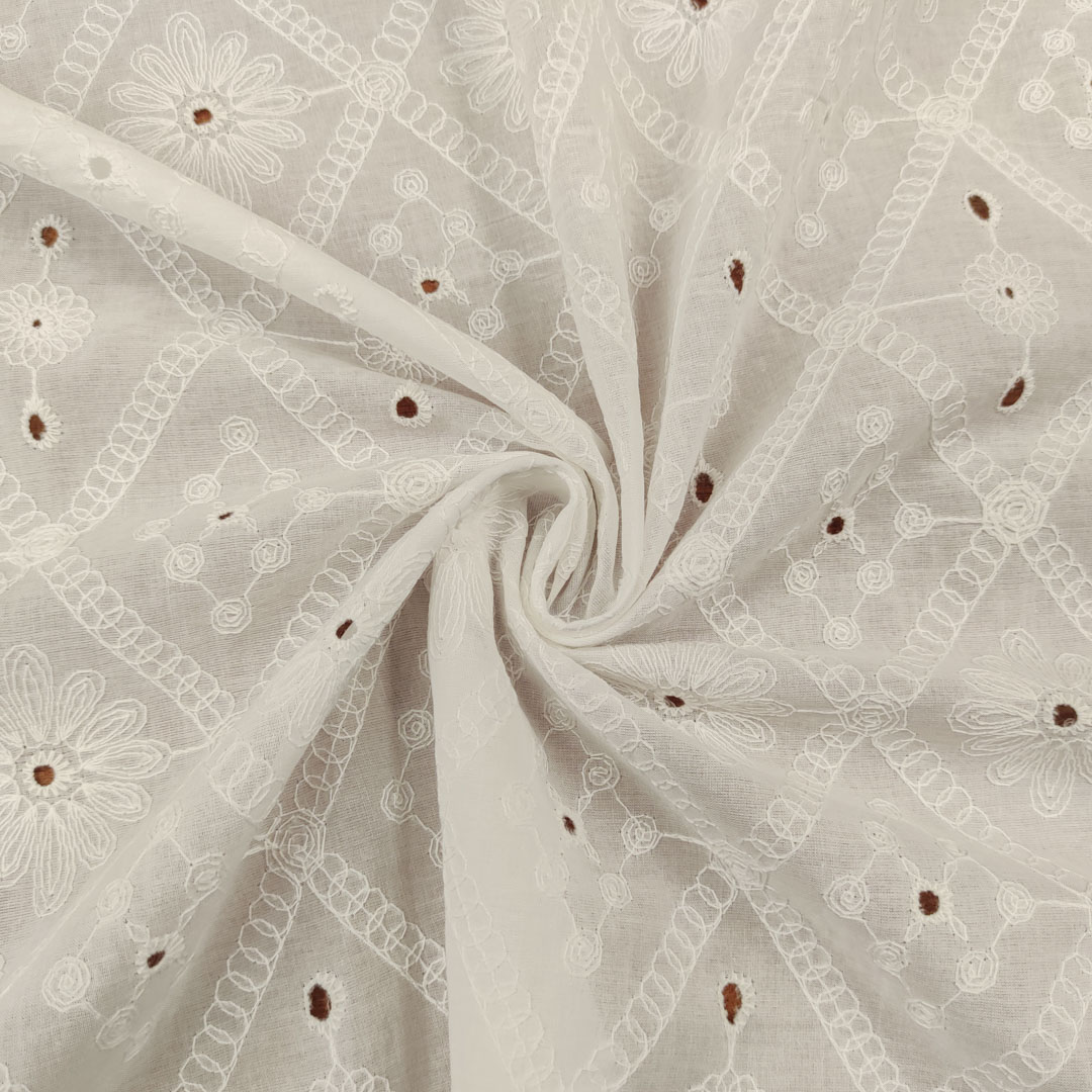 Tessuto Mussola di Cotone ricamato motivo astratto bianco