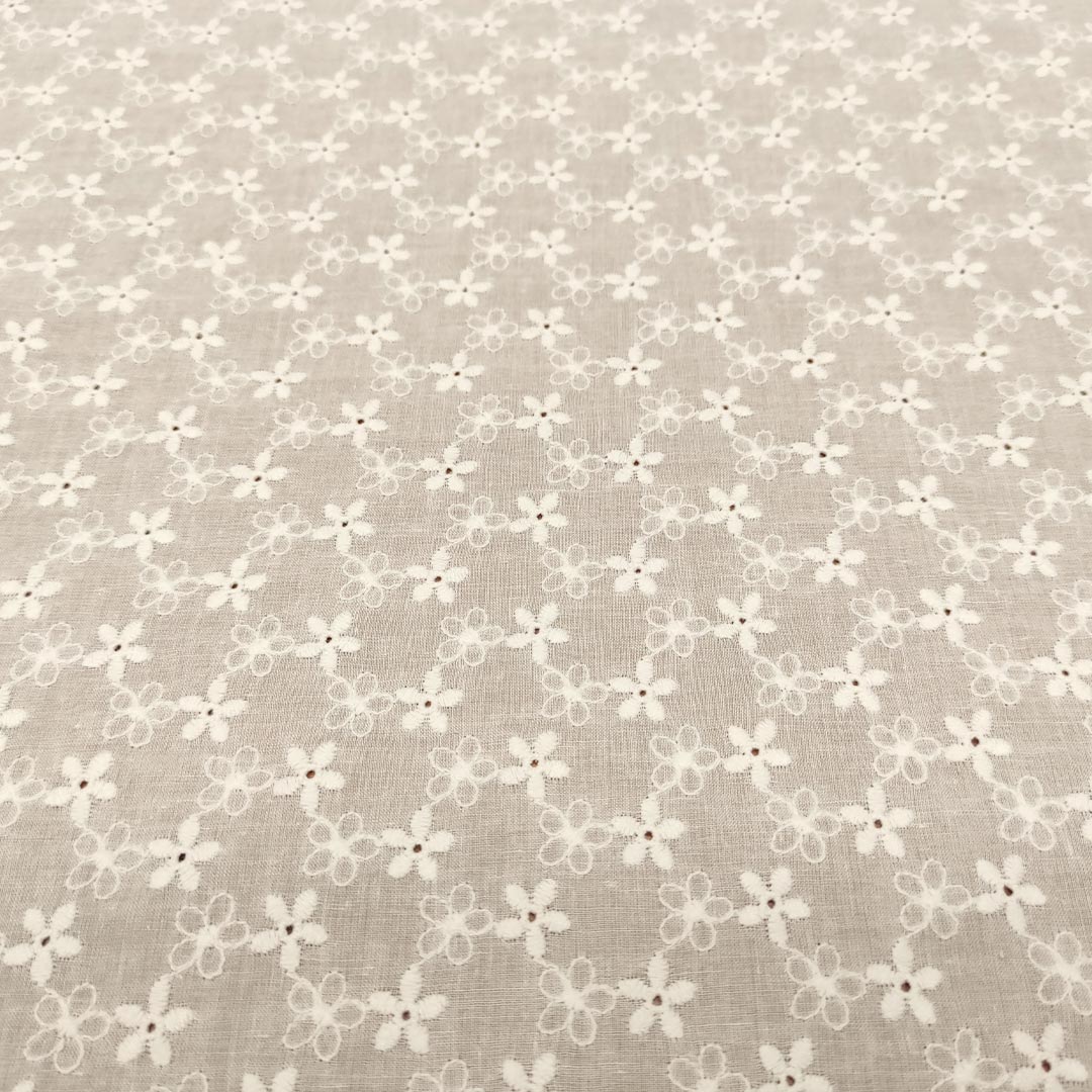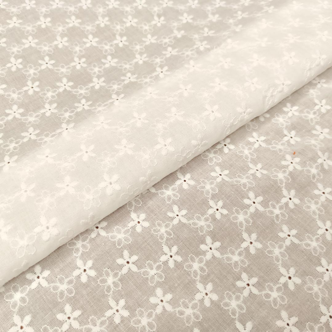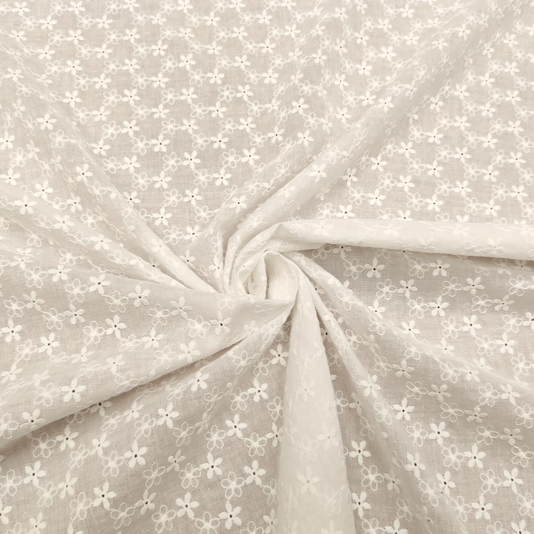Tessuto Mussola di Cotone ricamato motivo floreale bianco ottico