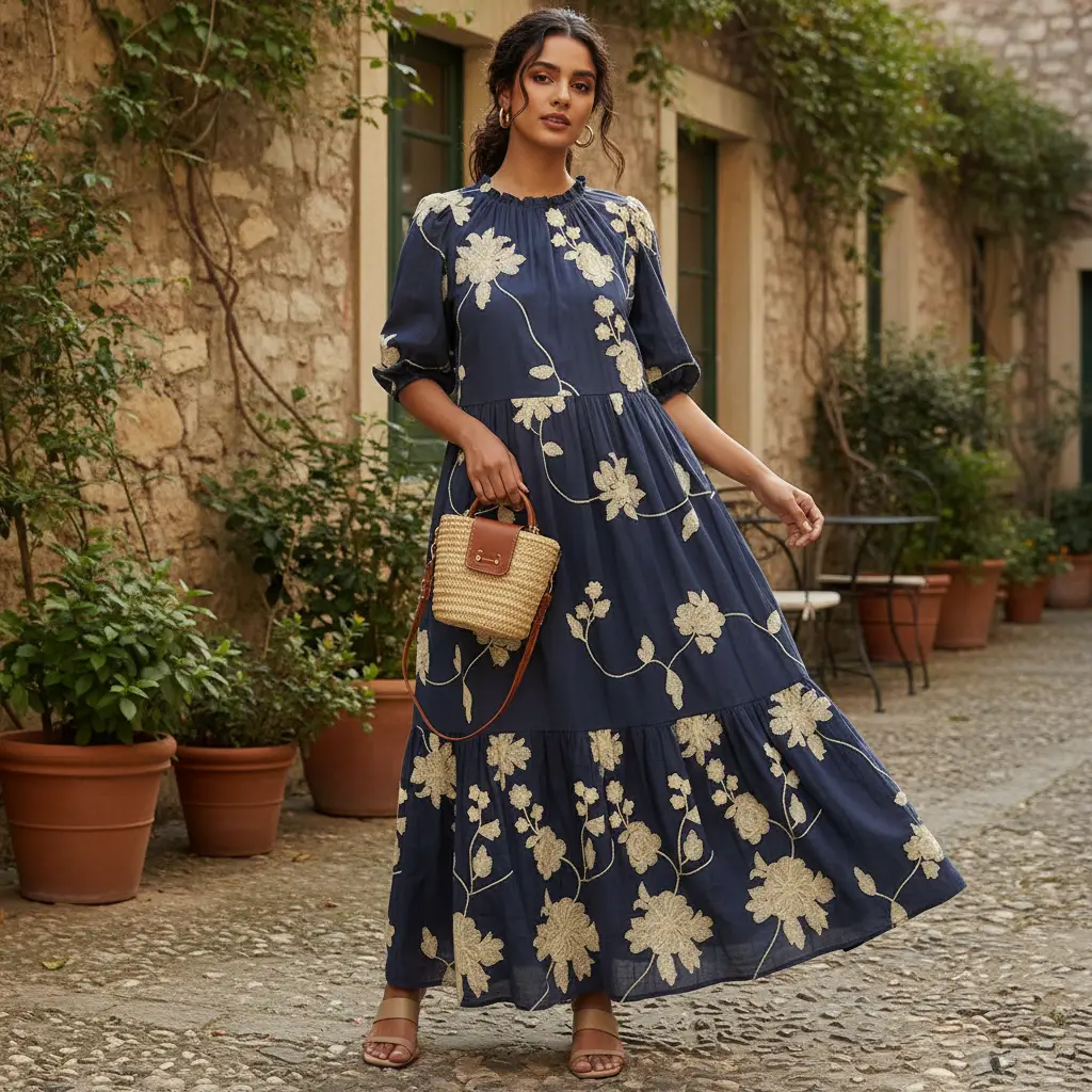Tessuto Mussola di Cotone ricamato dalla mano leggera e fresca, ideale per realizzare capi comodi e freschi come: abiti, gonne, pantaloni e camicie.