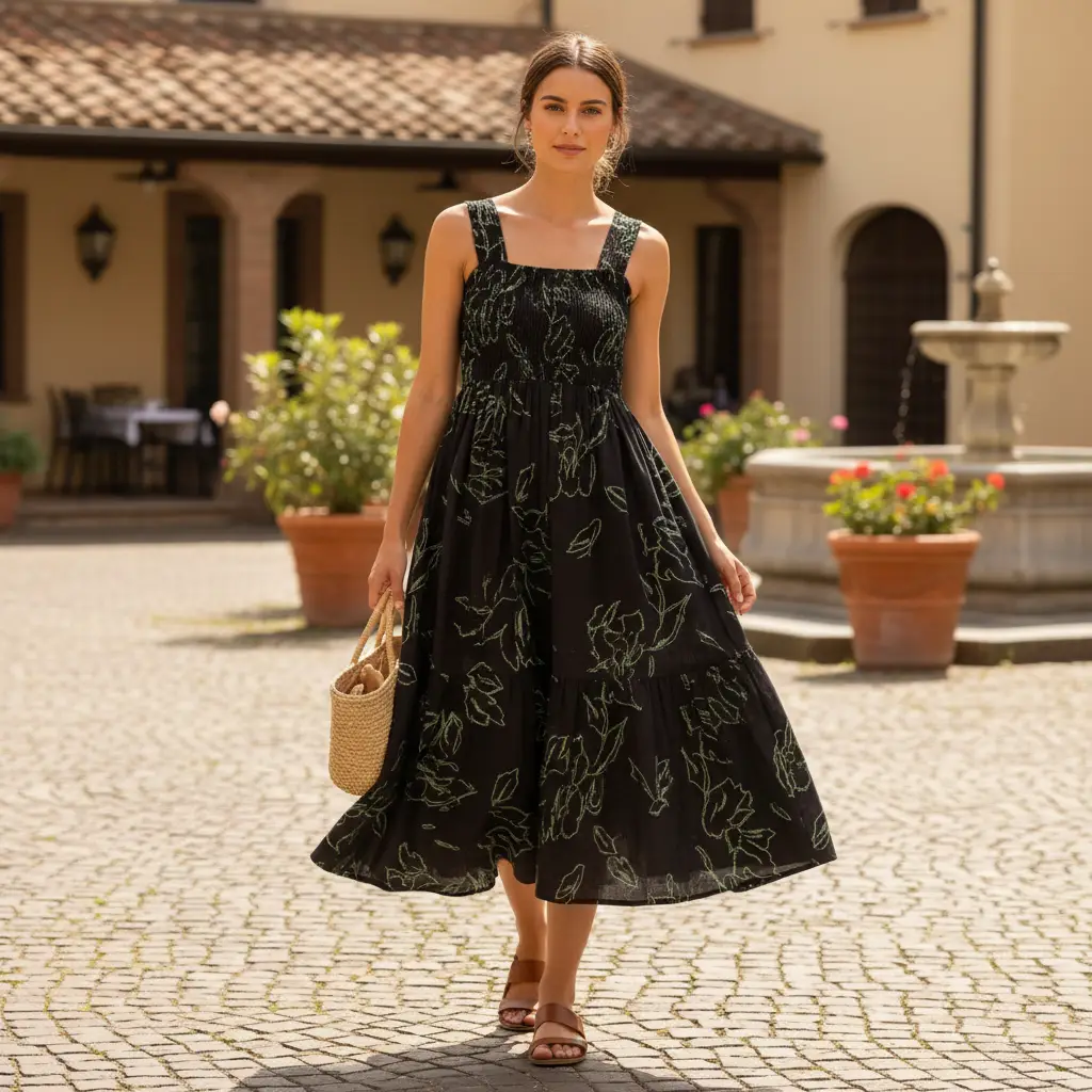 Tessuto Mussola ricamato dalla mano leggera e fresca, ideale per realizzare capi comodi e freschi come: abiti, gonne, pantaloni e camicie.