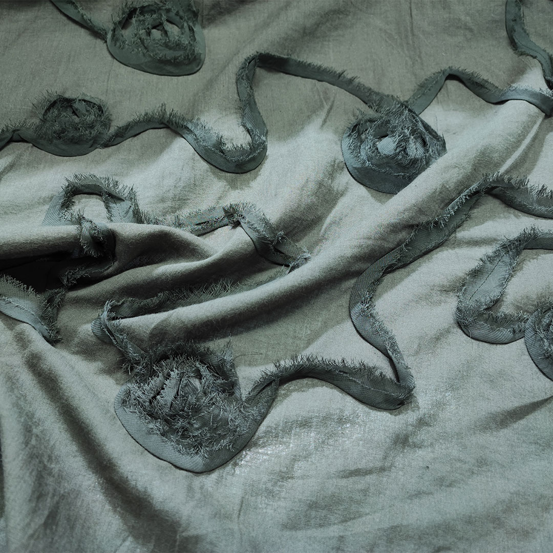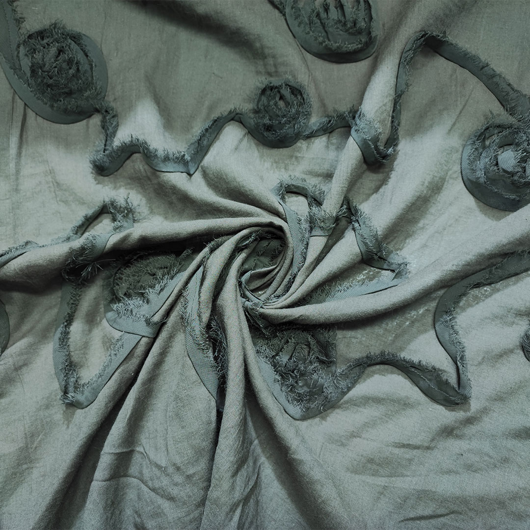 Tessuto Mussola di Cotone ricamato tinta unita verde militare