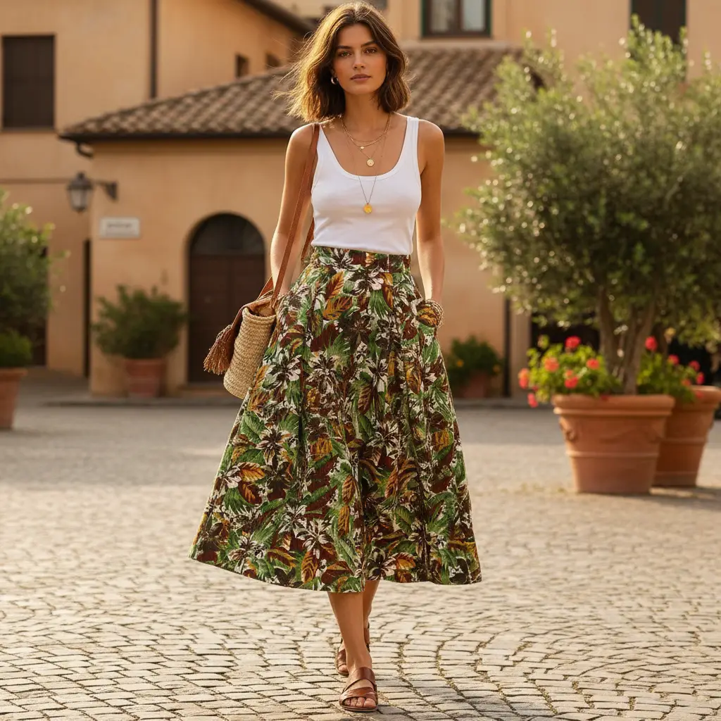 Tessuto Ottoman in misto cotone a fantasia, si presta alla creazione di capi freschi e comodi da utilizzare nella stagione primavera – estate come: pantaloni, gonne, giacche ed abiti.