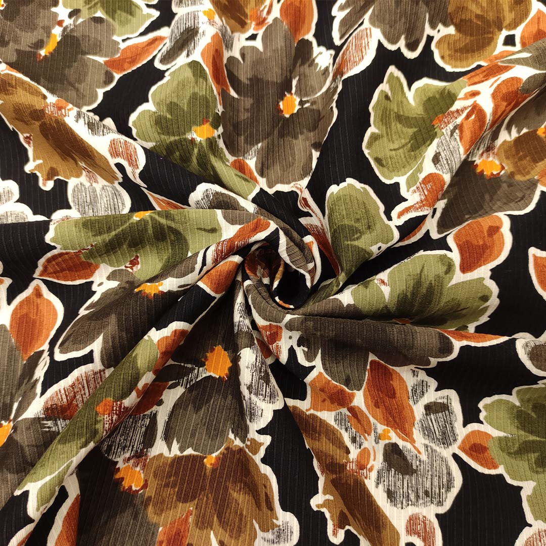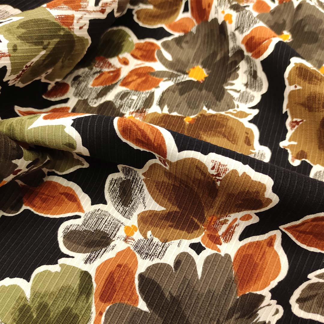 Tessuto Ottoman in misto cotone a fantasia motivo floreale nero – verde militare – ruggine