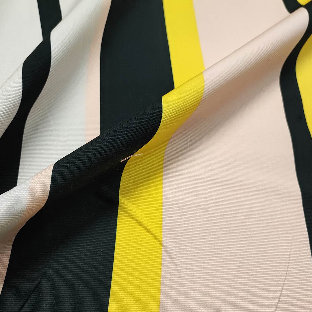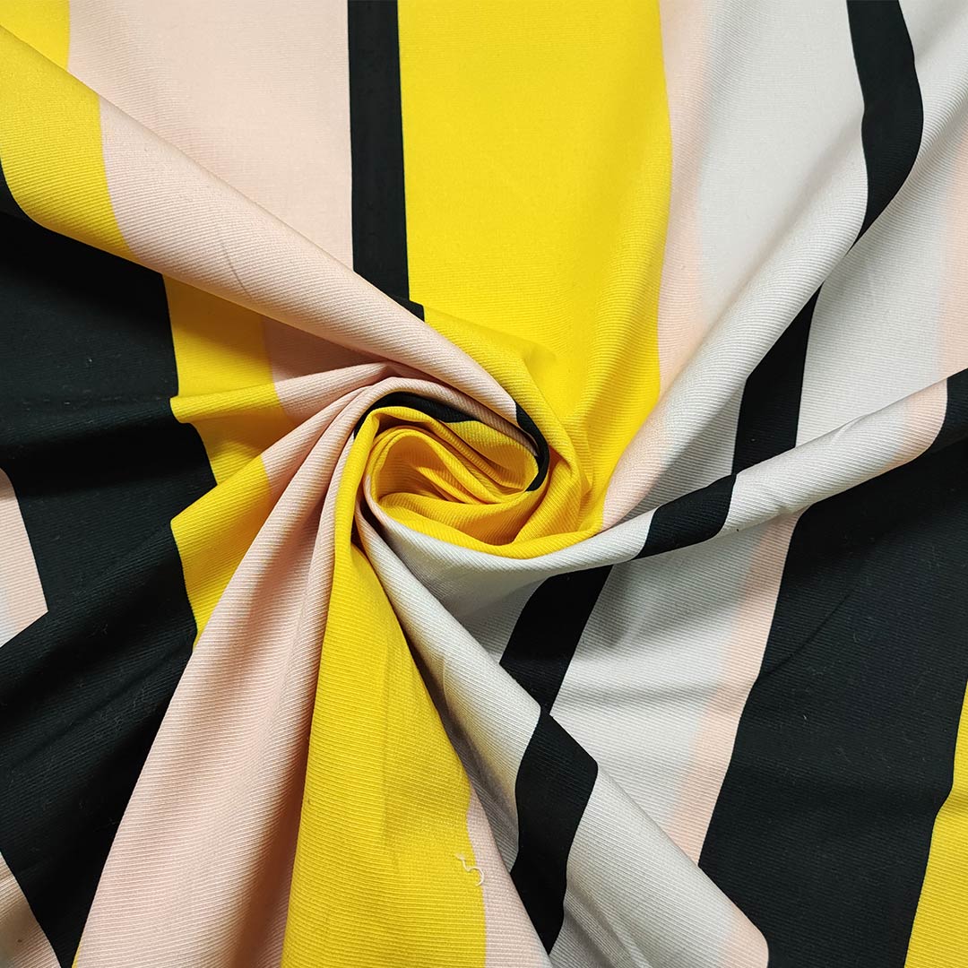 Tessuto Piquet di cotone a fantasia motivo rigato nero – giallo – pesco