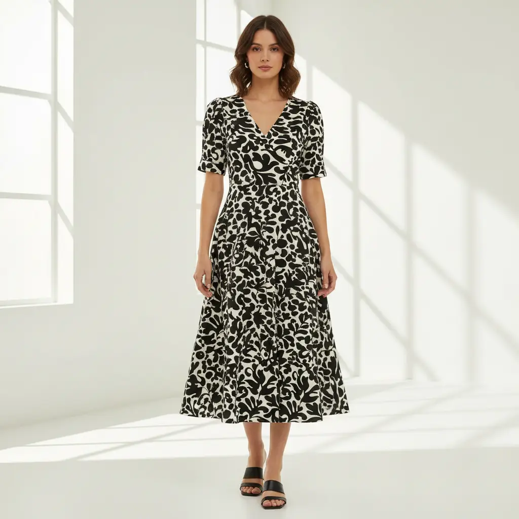 Tessuto Popeline di Cotone a fantasia leggermente elastico dalla mano leggera e fresca, ideale per realizzare capi comodi e freschi come: abiti, gonne, pantaloni e camicie.