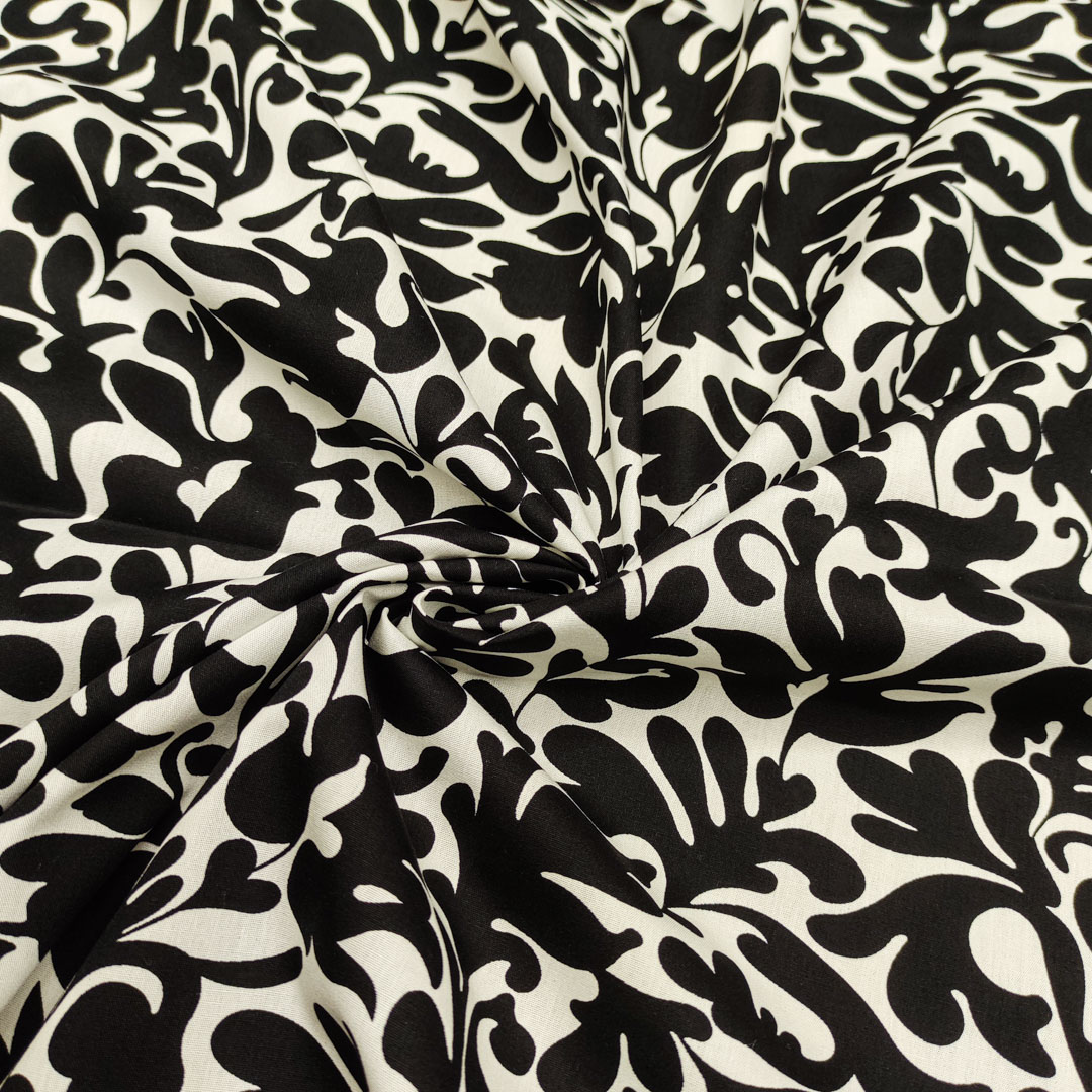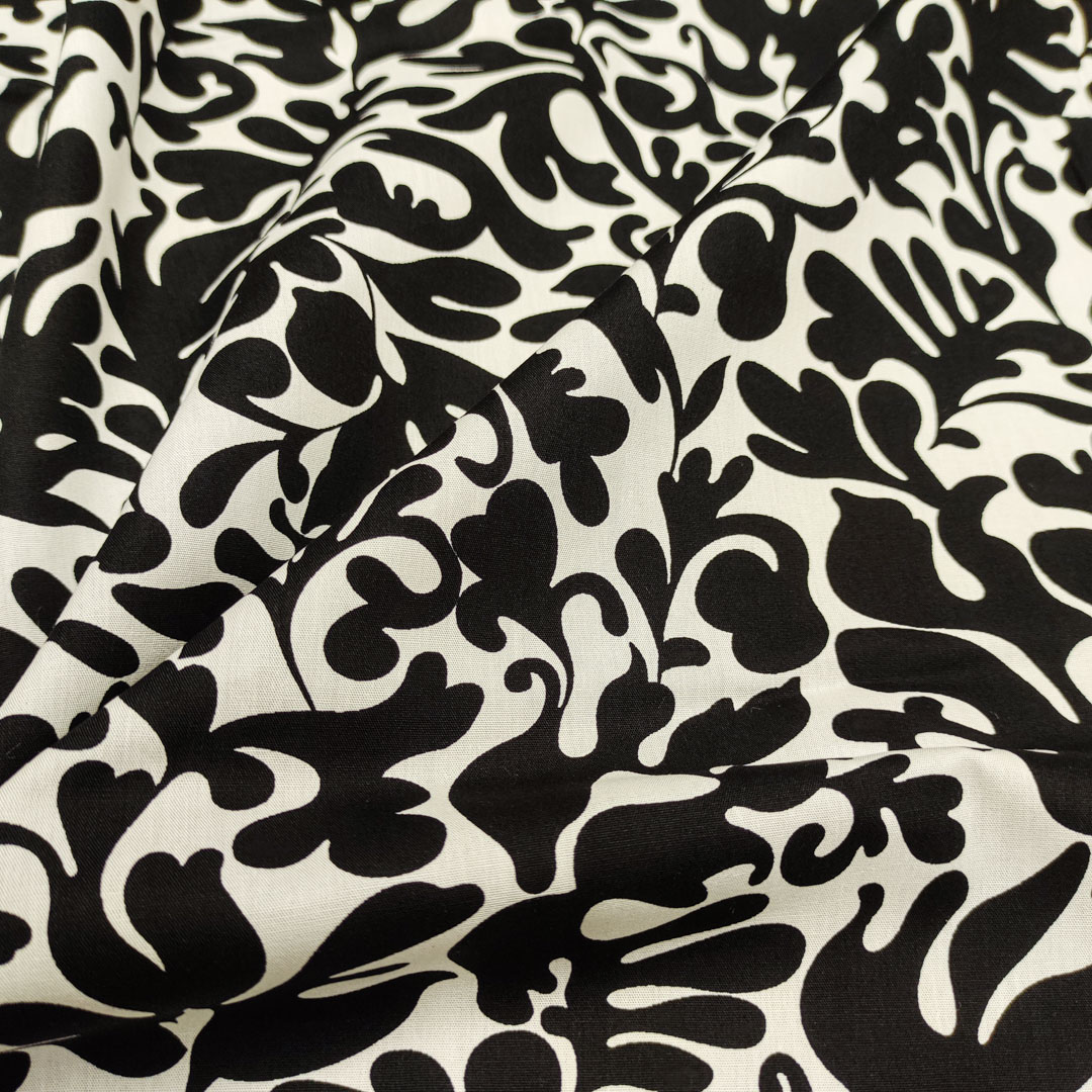 Tessuto Popeline di cotone a fantasia motivo astratto bianco – nero