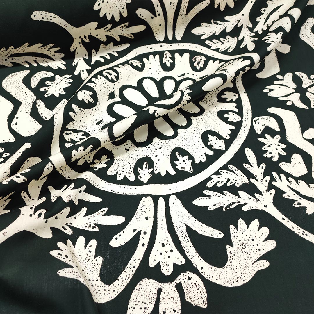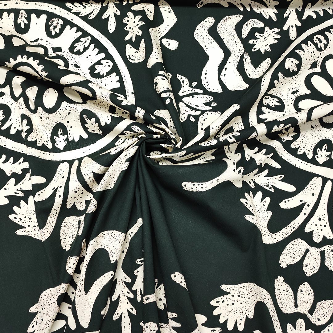 Tessuto Popeline di cotone a fantasia motivo astratto nero – panna