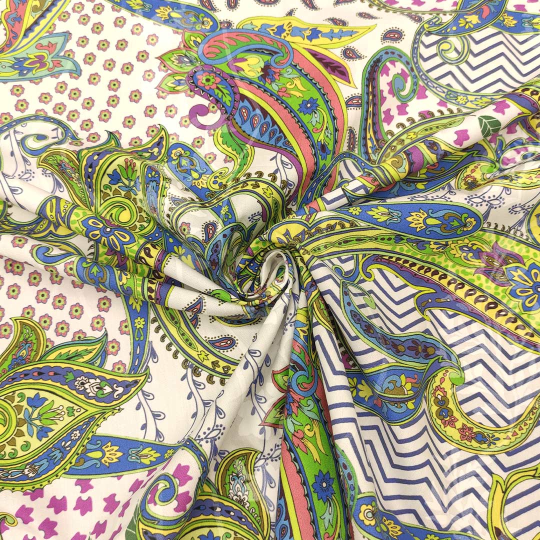 Tessuto Popeline di Cotone a fantasia motivo floreale cashmere verde – blu elettrico – vinaccio